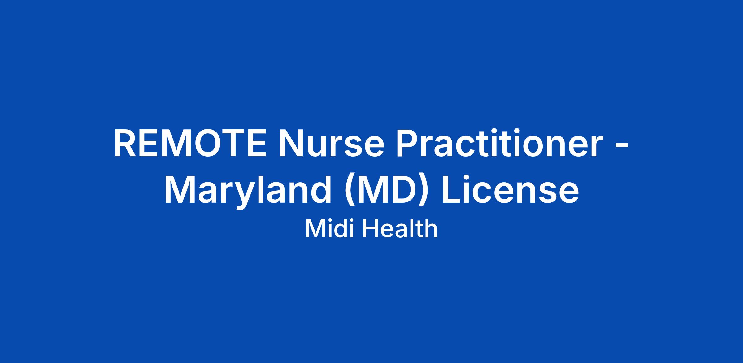 REMOTE Nurse Practitioner - Maryland (MD) License