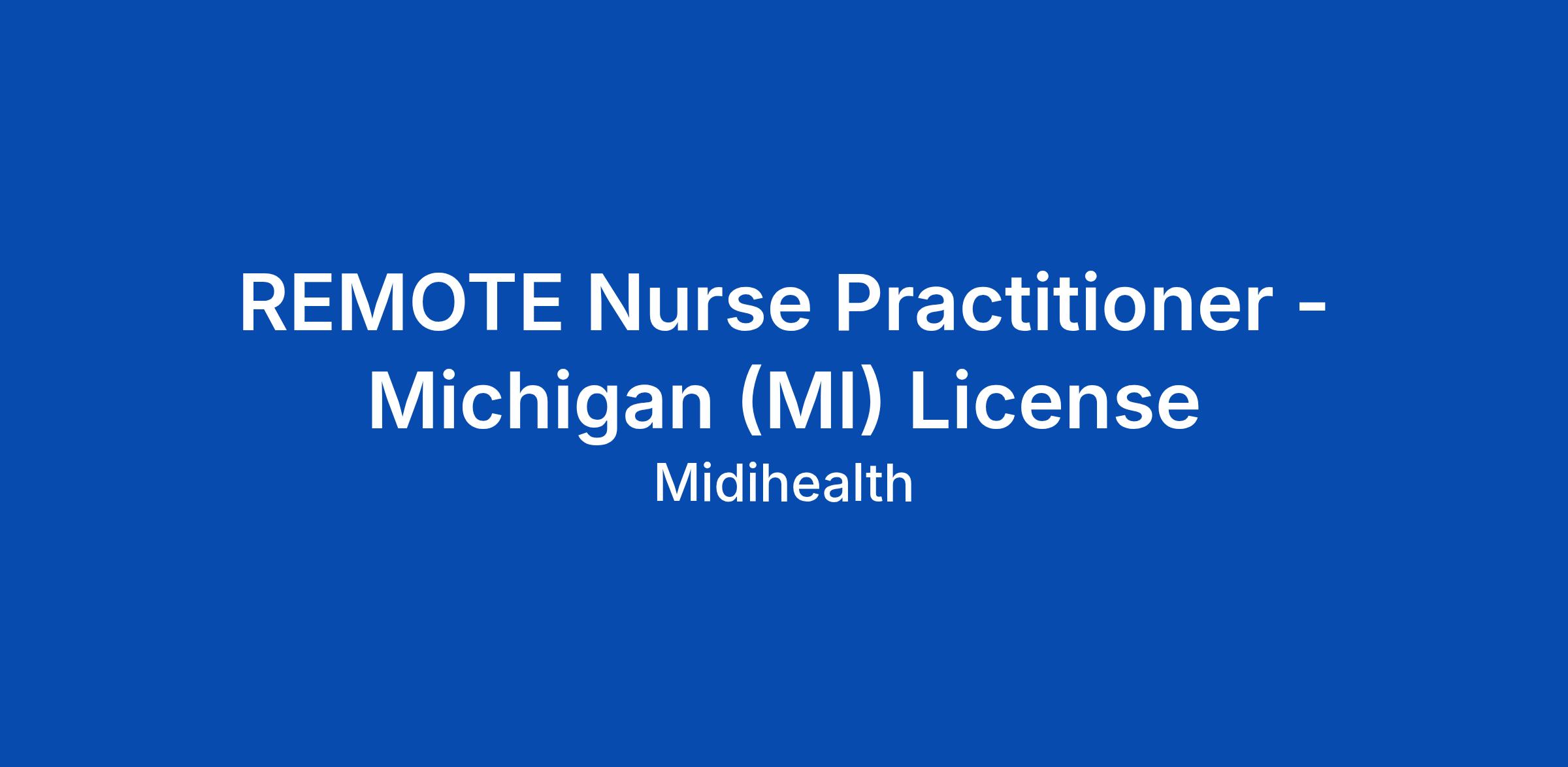 REMOTE Nurse Practitioner - Michigan (MI) License