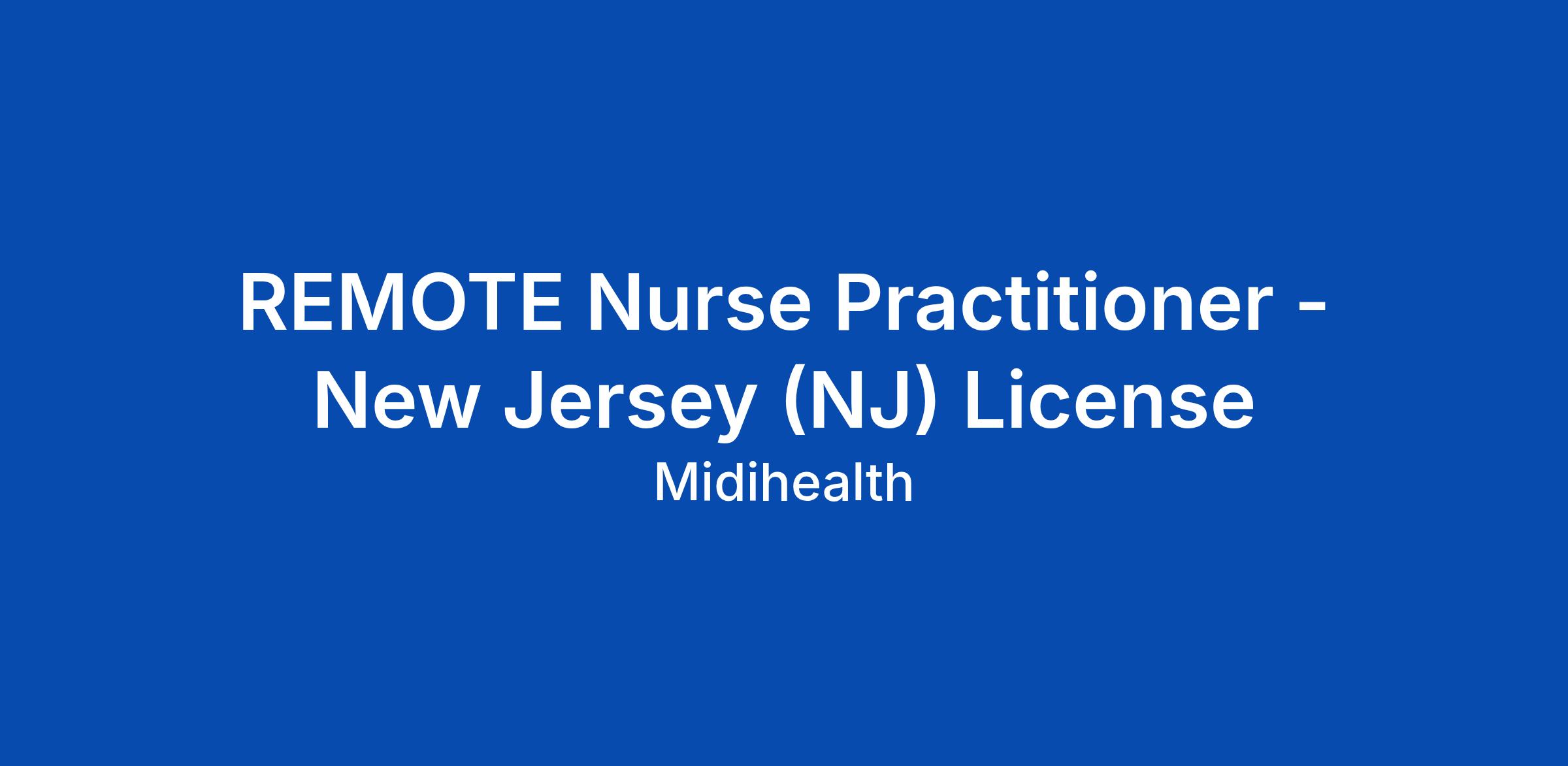 REMOTE Nurse Practitioner - New Jersey (NJ) License