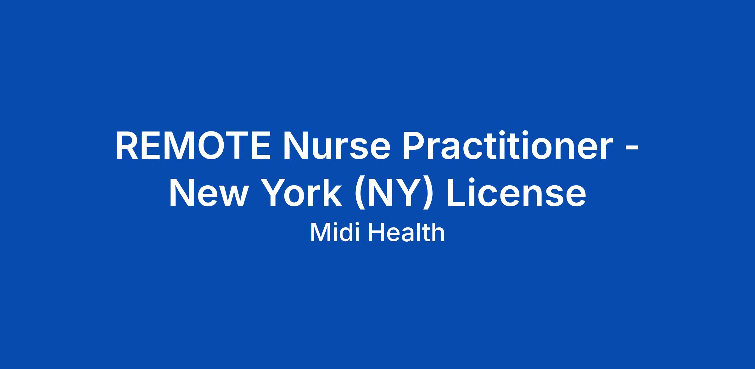 REMOTE Nurse Practitioner - New York (NY) License