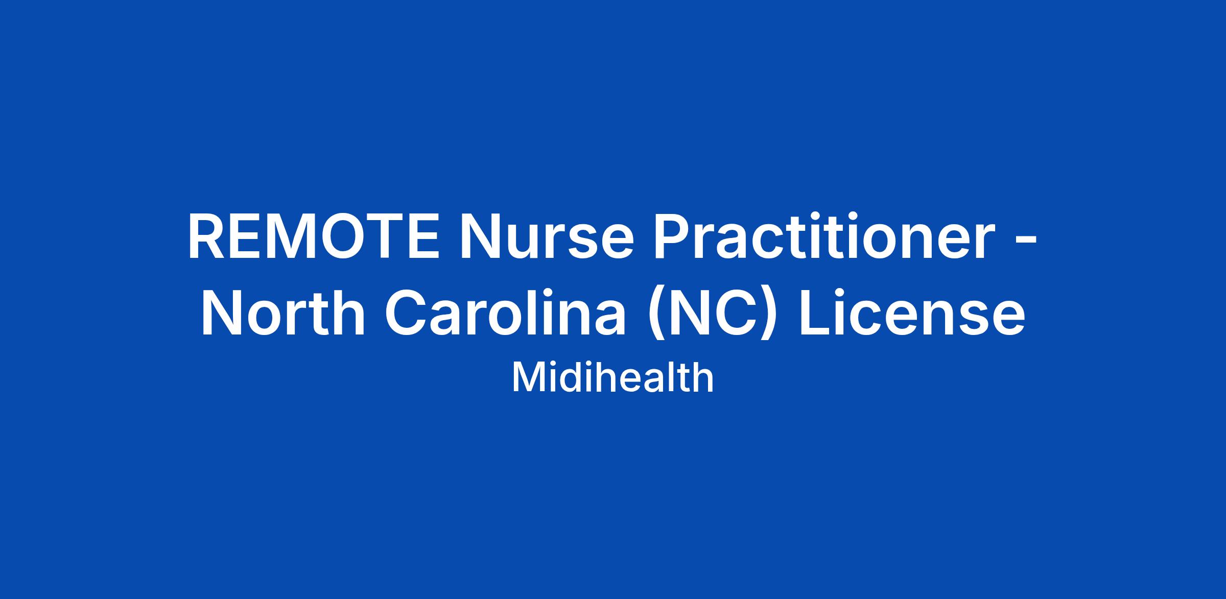 REMOTE Nurse Practitioner - North Carolina (NC) License