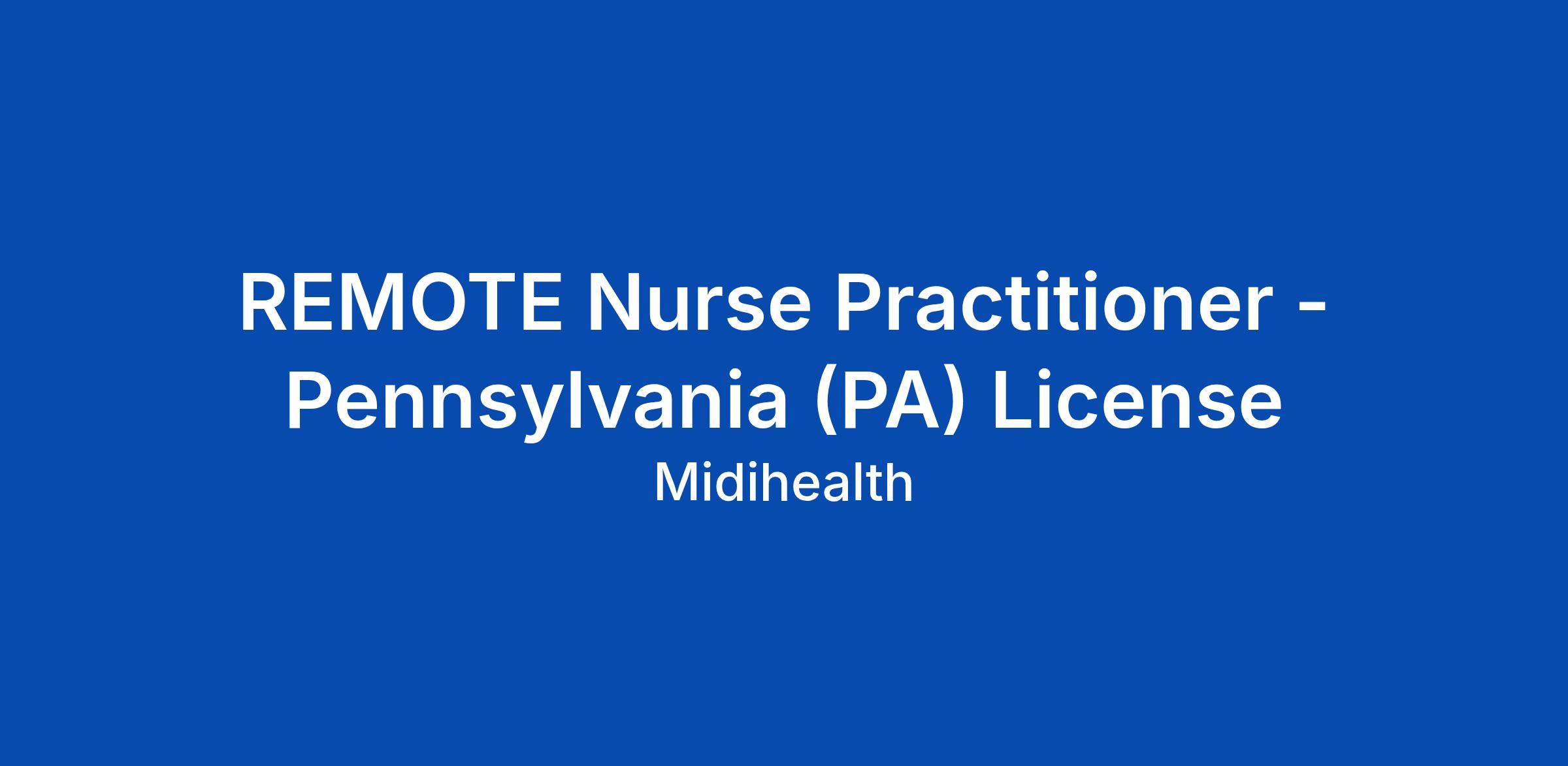 REMOTE Nurse Practitioner - Pennsylvania (PA) License