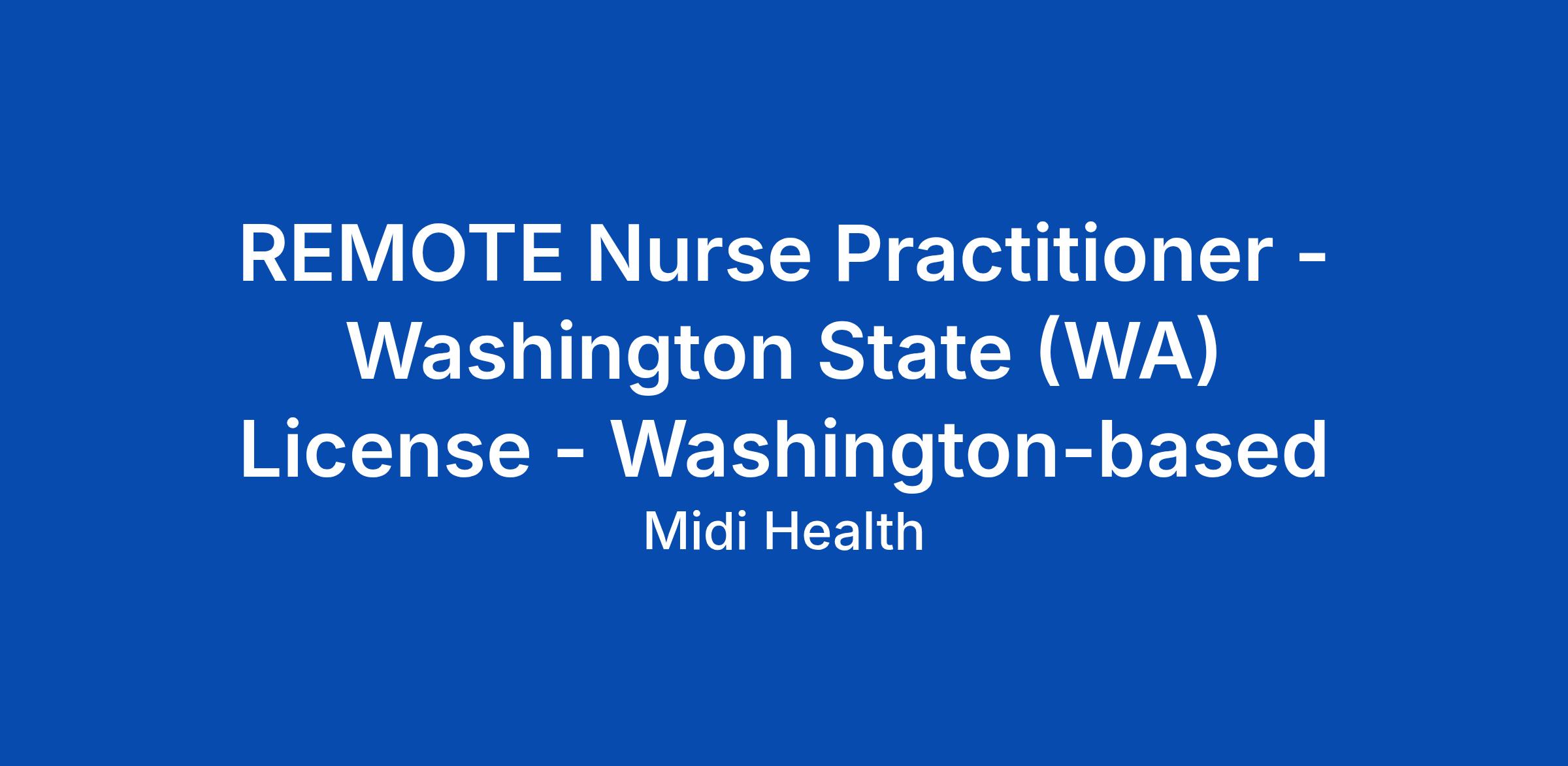 REMOTE Nurse Practitioner - Washington State (WA) License - Washington-based