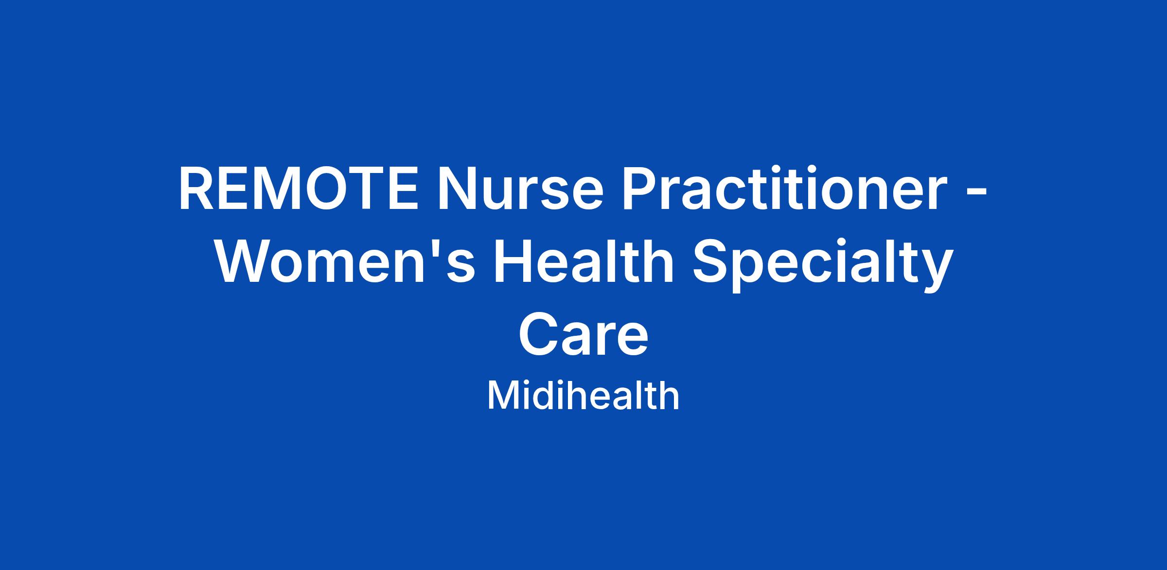 REMOTE Nurse Practitioner - Women's Health Specialty Care