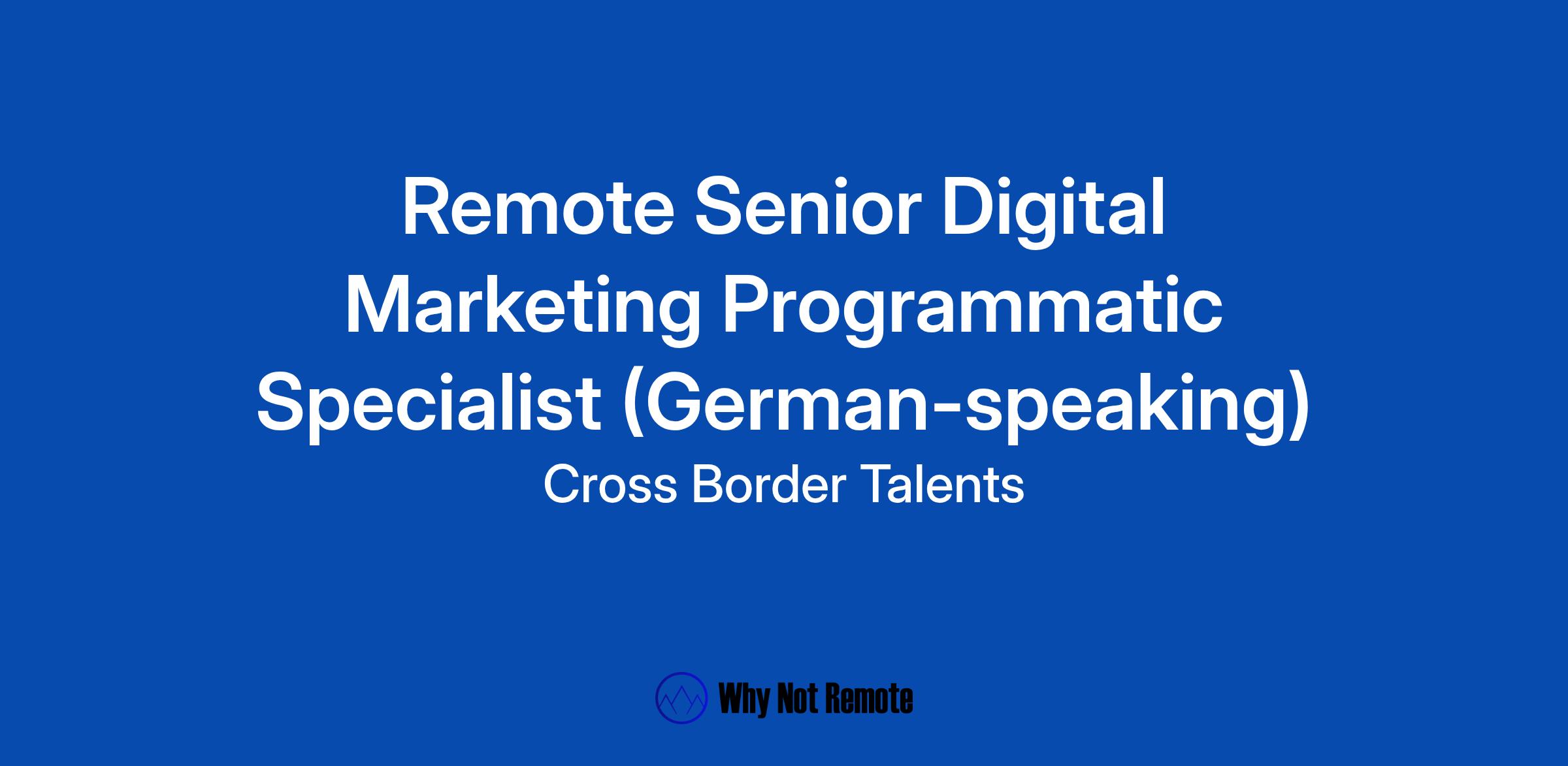 Cross Border talents is looking for fluent German speakers with previous experience in digital marketing and practical experience and knowledge working with Google Ads for the work-from-home opportunity of a Senior Digital Marketing Programmatic Specialist to work from anywhere in continental Portugal.