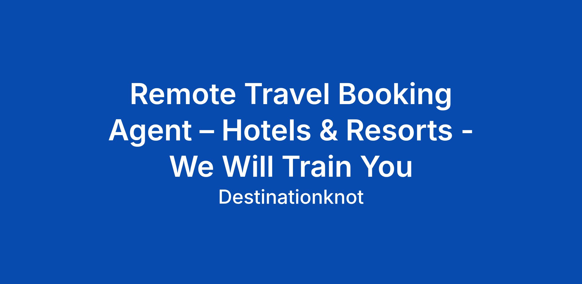 Remote Travel Booking Agent – Hotels & Resorts - We Will Train You