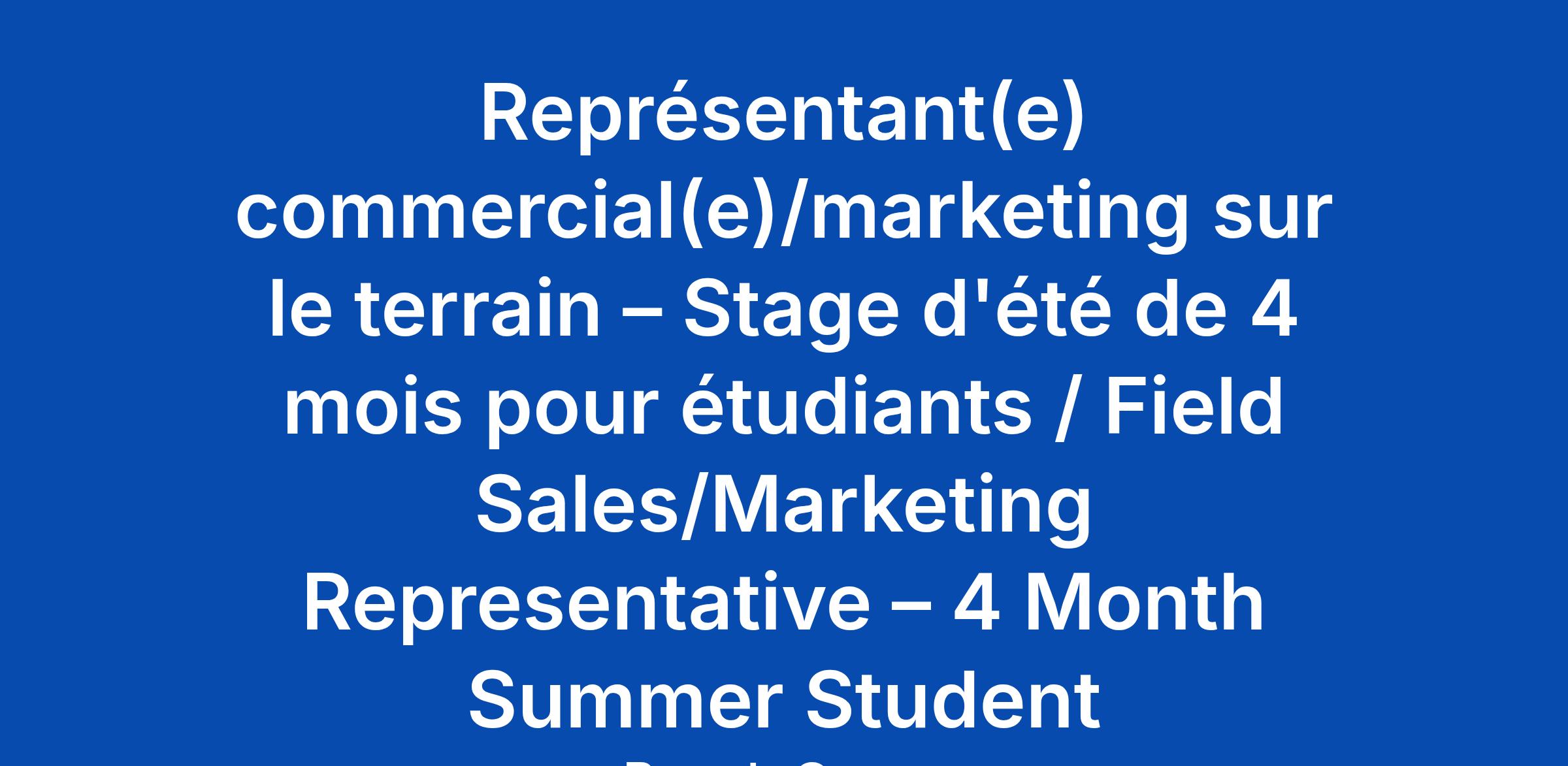 Représentant(e) commercial(e)/marketing sur le terrain – Stage d'été de 4 mois pour étudiants / Field Sales/Marketing Representative – 4 Month Summer Student