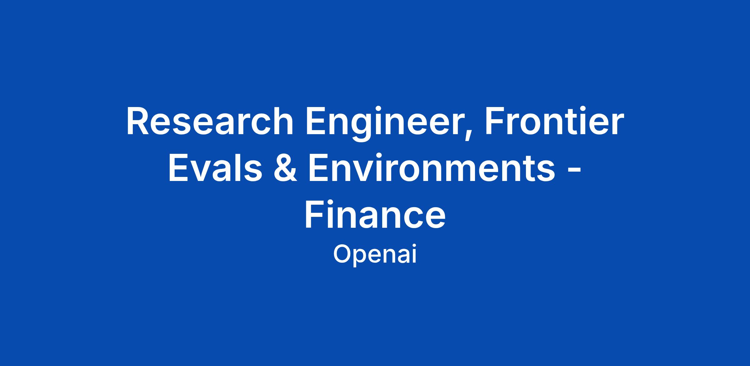 Research Engineer, Frontier Evals & Environments - Finance
