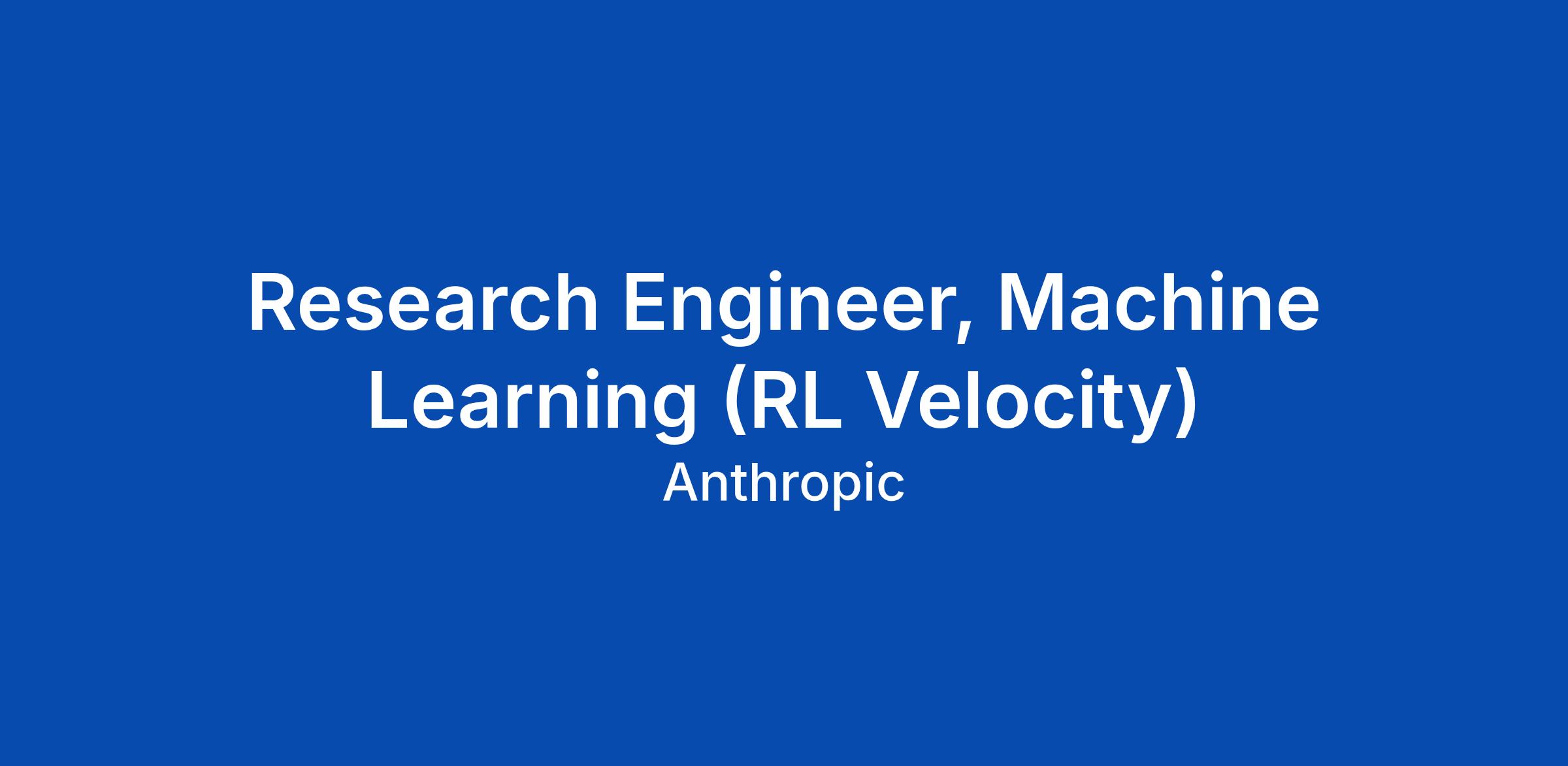 The RL Velocity team owns the efficiency and reliability of our RL Science stack - the infrastructure, tooling, and systems that let researchers iterate quickly on training runs. As a Research Engineer on the team, you'll build and improve the core platform that underpins how we do RL at Anthropic, removing bottlenecks that slow down research and making it easier for the broader org to ship better models faster. This is high-leverage work: small improvements to velocity compound across every researcher and every run.