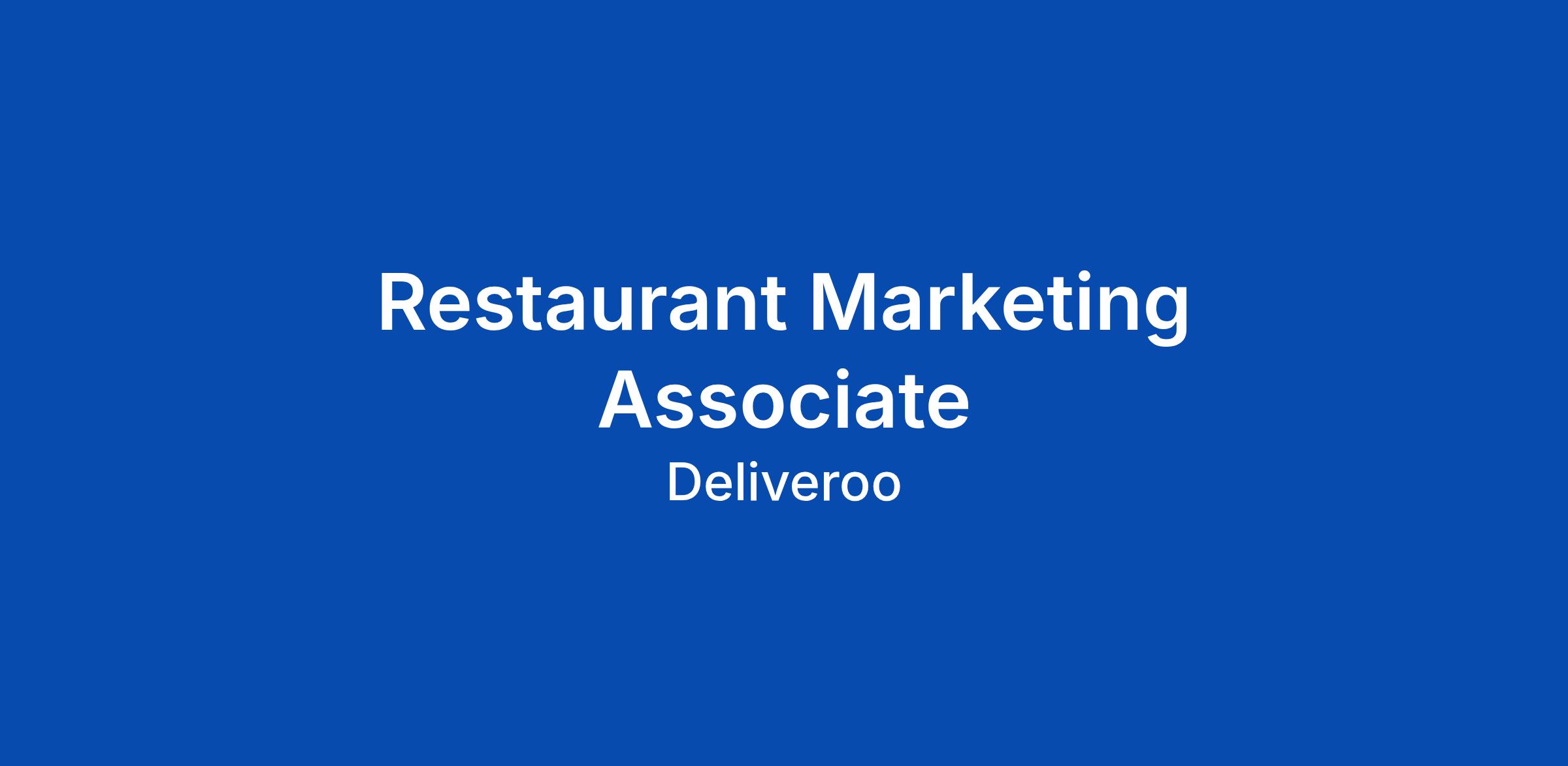 About the role We are seeking a talented marketing associate to join the Restaurant Marketing Team at Deliveroo. In this position, you will report to the Senior Marketing Manager and be responsible for developing and executing growth initiatives with exciting national QSR restaurant partners such as McDonaldβs, German Doner Kebab, Popeyes and more! If you are ready to bring your skills to a dynamic and rewarding environment, we would love to hear from you. What you'll be doing - Act as the key marketing point of contact with designated restaurant partners, including McDonaldβs, German Doner Kebab and Taco Bell. - Helping to developing annual joint business plans with key Restaurant Partners to drive growth on Deliveroo - Support the acquisition of new national restaurant partners by building relevant and impactful launch plans - Support in driving the Restaurant marketing strategy within the Quick Service Restaurant segment at Deliveroo - Partnering closely with Commercial teams to drive growth through new customer acquisition, frequency and retention, and brand awareness. - Working on Quarterly Growth Opportunities with your Partners, outlining key opportunities for brands to part
