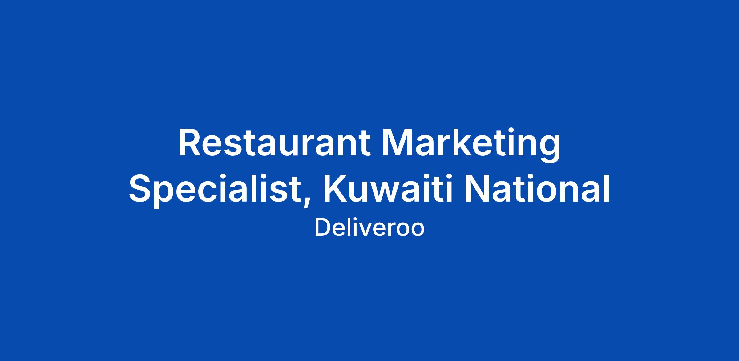 Restaurant Marketing Specialist, Kuwaiti National