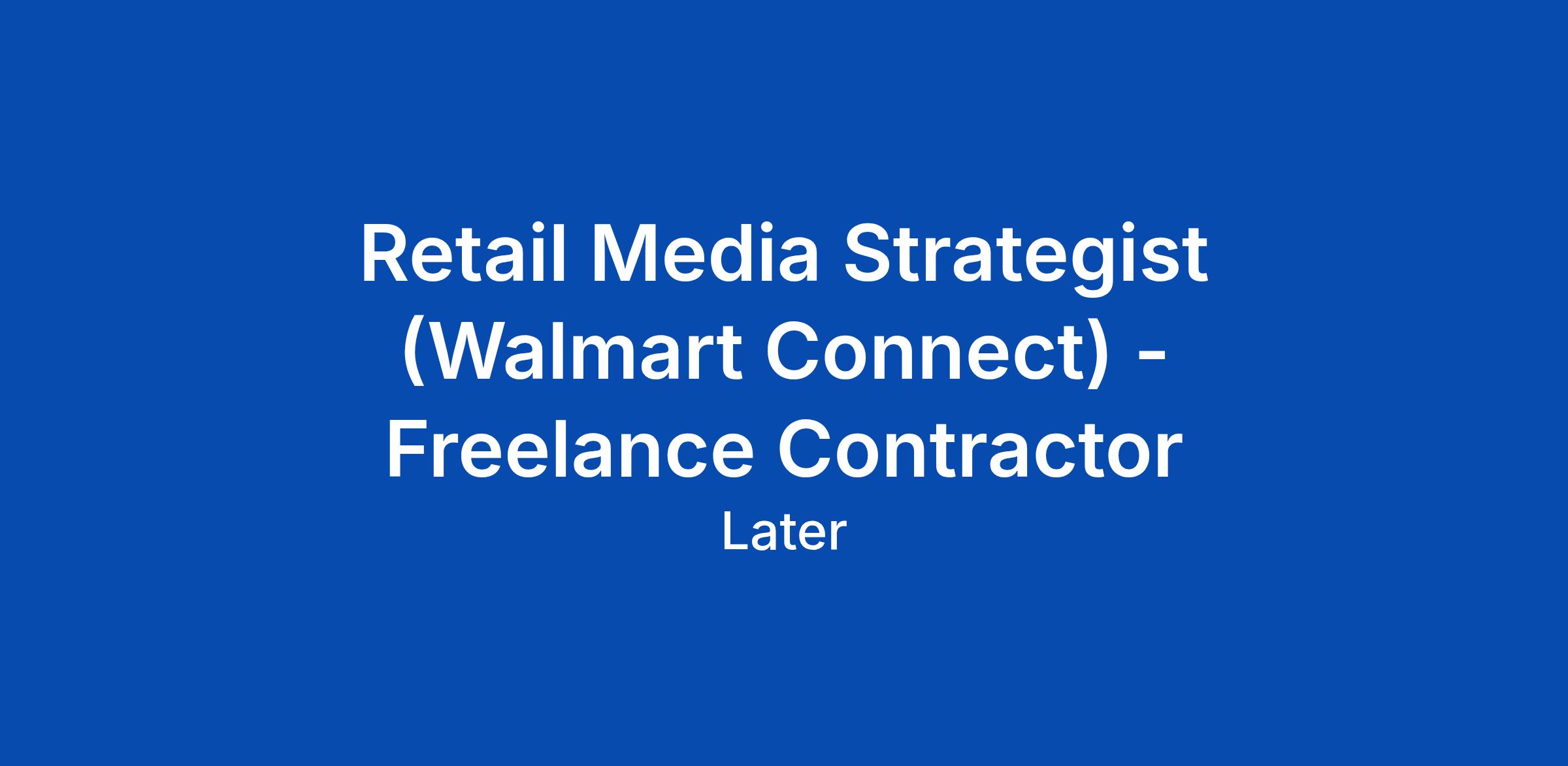 Retail Media Strategist (Walmart Connect) - Freelance Contractor