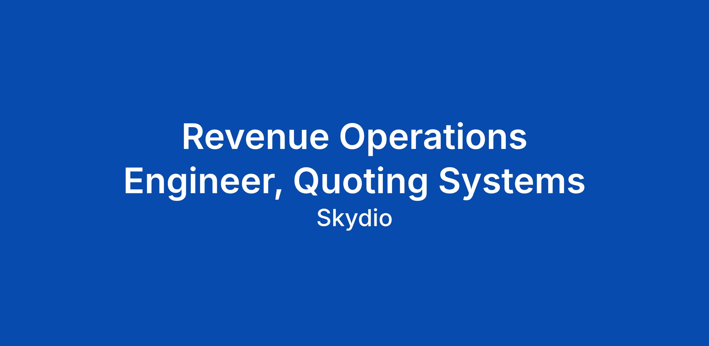 Revenue Operations Engineer, Quoting Systems