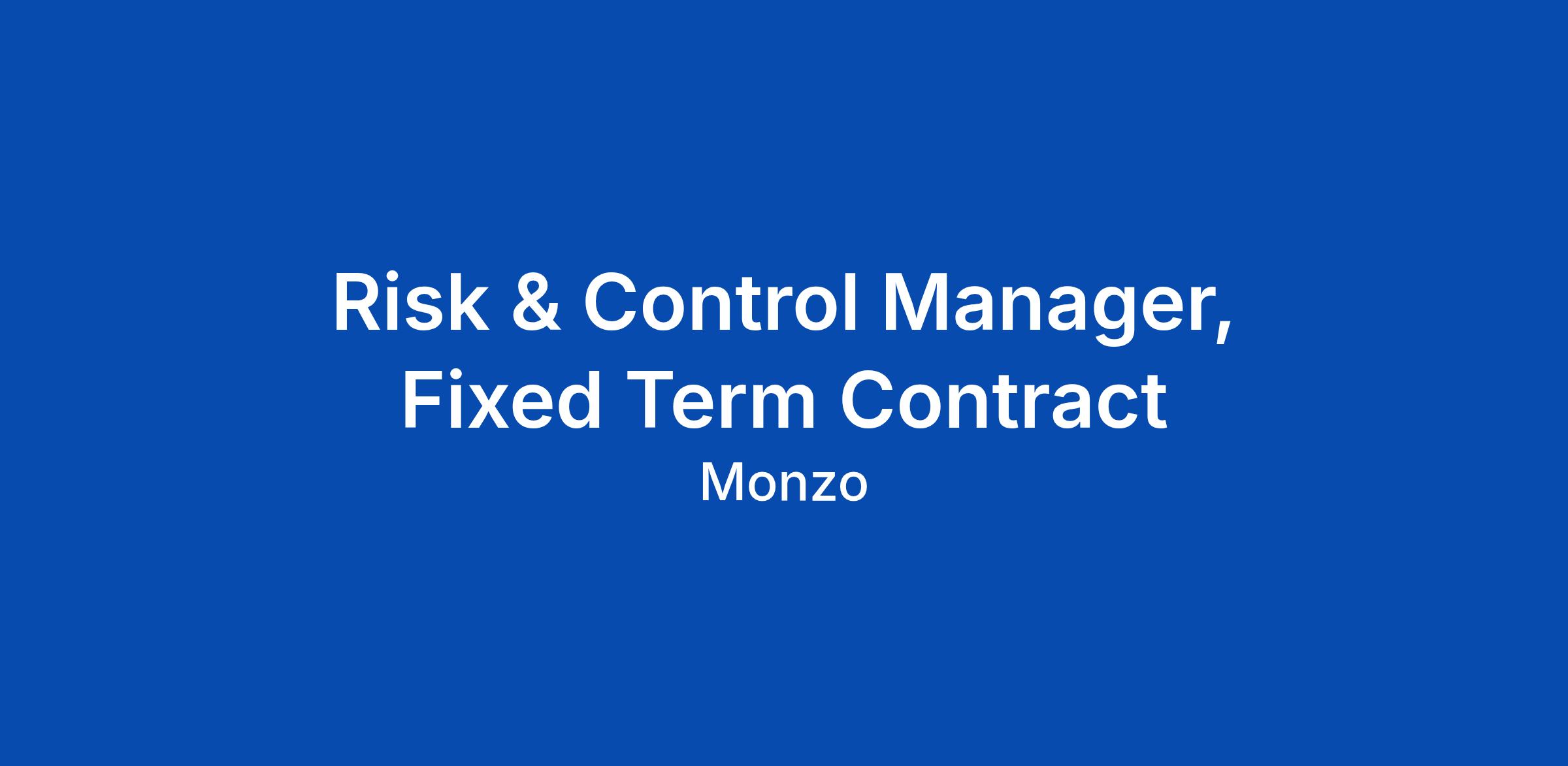 Risk & Control Manager, Fixed Term Contract