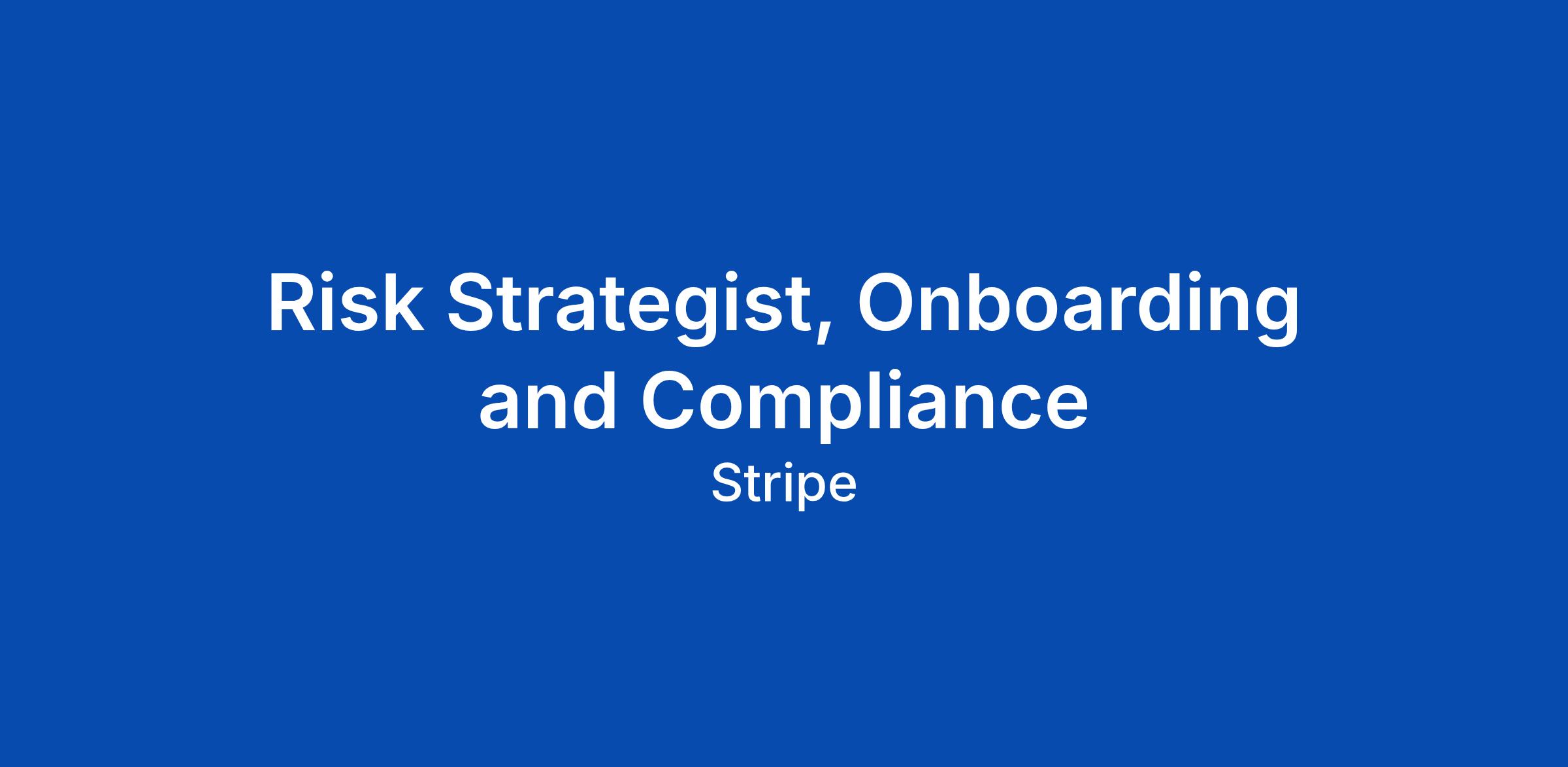 Risk Strategist, Onboarding and Compliance