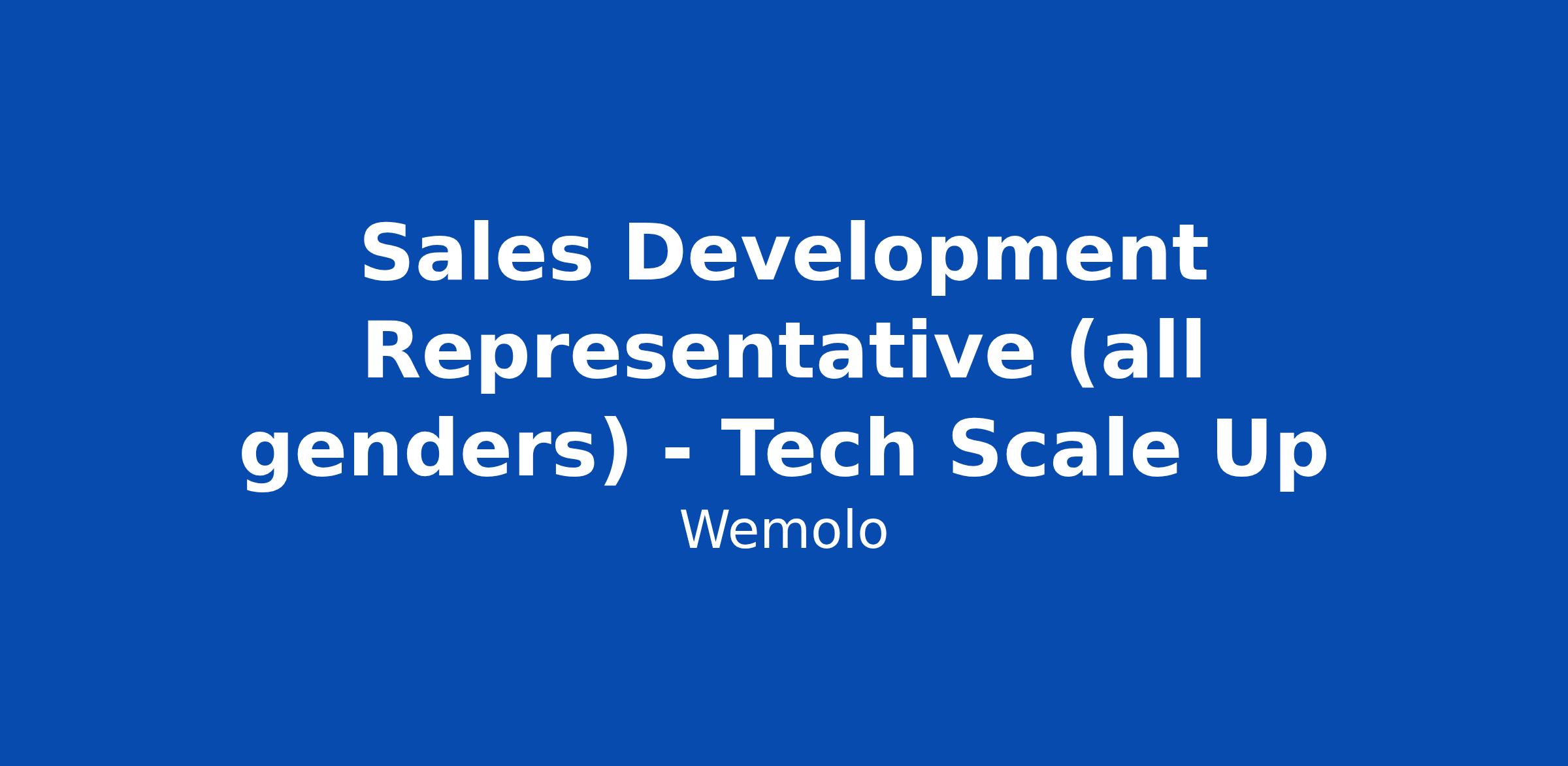 Bist du bereit, dich mit uns auf eine spannende Reise zu begeben? Wir leben unsere Values und fördern ein Umfeld, in dem Innovation und persönliche Entwicklung Hand in Hand gehen. Als Sales Development Representative (all genders) ist dein Hauptziel, durch den Vertrieb unserer Technologien einen Grundstein dafür zu legen, weitere Unternehmensaccounts auszubauen und so einen bedeutenden Beitrag zu unserem Wachstum zu leisten. Wemolo ist Service- und Innovationsführer in der digitalen Parkraumbewirtschaftung und mit einem Wachstum von 23.000 % seit 2019 das schnellst wachsende Start-up in Deutschland. Wir sind stolz darauf, unseren Kunden qualitativ hochwertige Lösungen anzubieten und unseren Beitrag dazu zu leisten Mobilitätskonzepte künftig vernetzter und effizienter zu gestalten. What to expect - Lead Generation: Durch deine zielgerichtete und selbstsichere Kommunikation baust du telefonisch, per E-Mail oder via LinkedIn Kontakt zu potenziellen Kunden auf, präsentierst unsere Produkte und Dienstleistungen und weckst ihr Interesse. - Marktanalyse: Du recherchierst und analysierst den deutschen Markt, um zukünftige Kunden zu identifizieren. - Networking: Du entwickelst innovative An