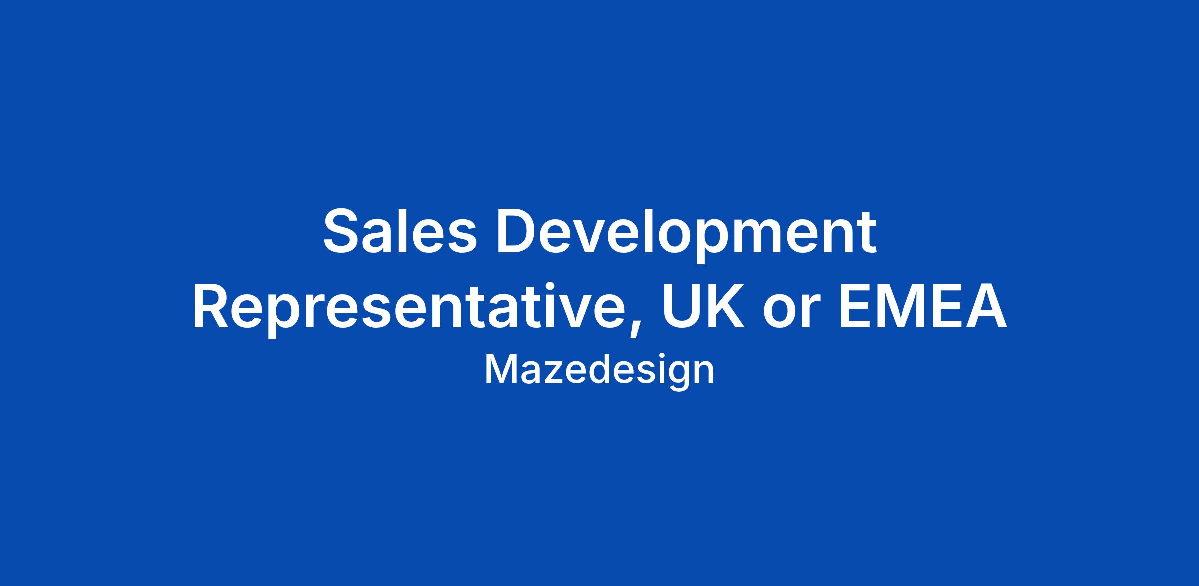 Sales Development Representative, UK or EMEA