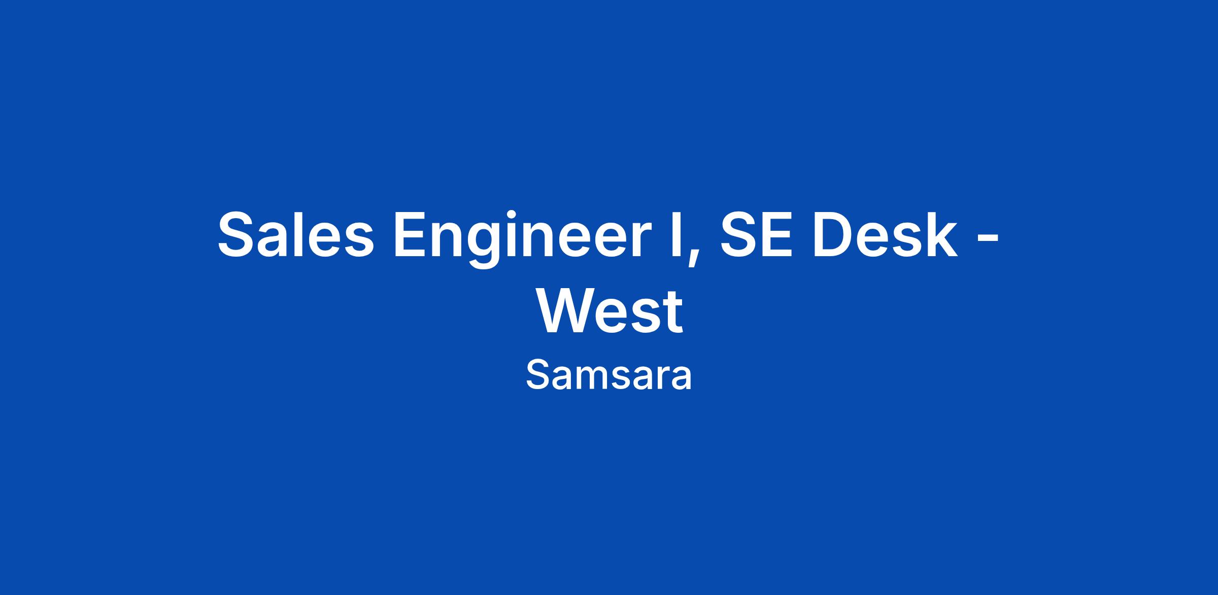 Sales Engineer I, SE Desk - West