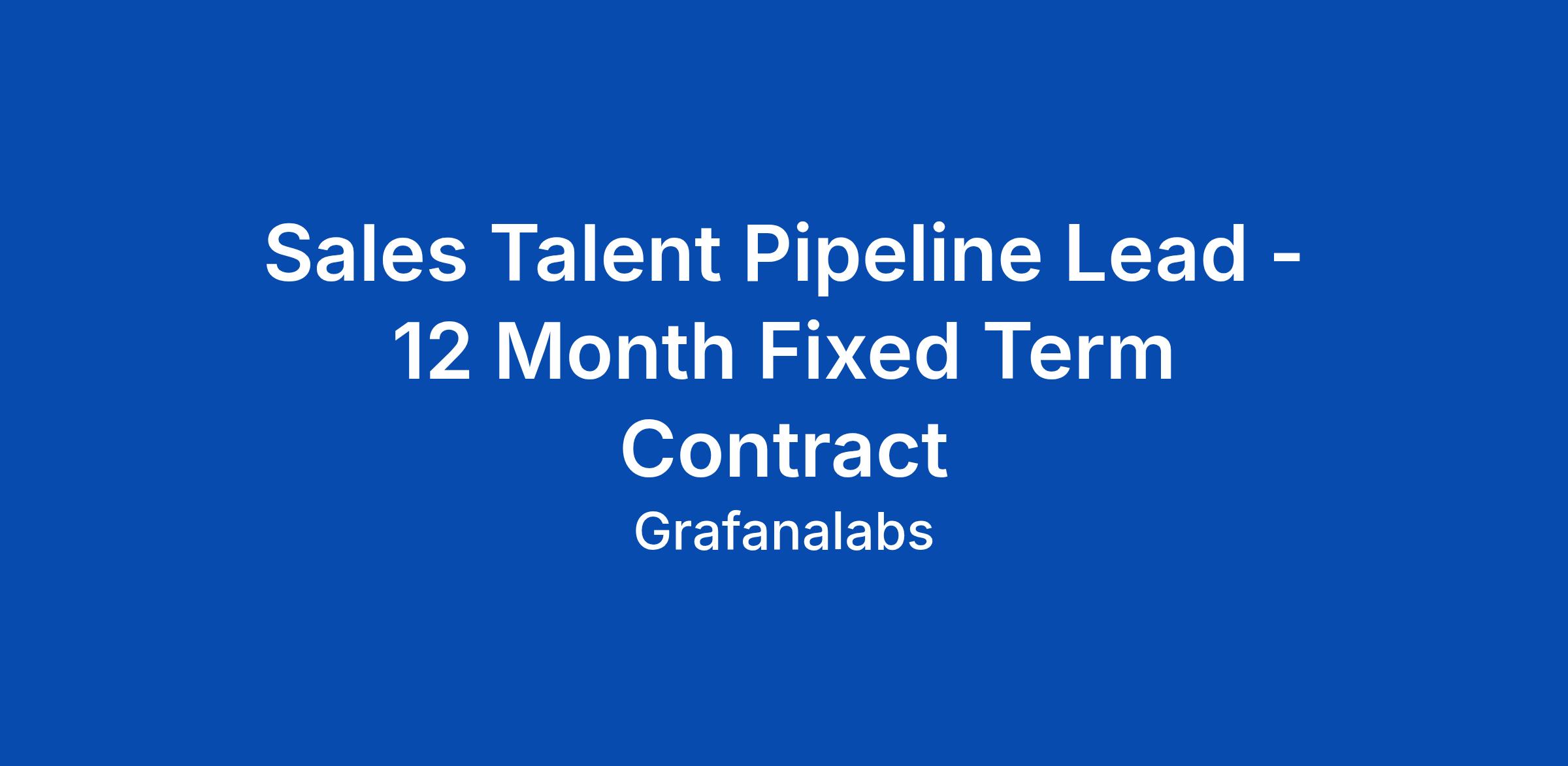 Sales Talent Pipeline Lead - 12 Month Fixed Term Contract