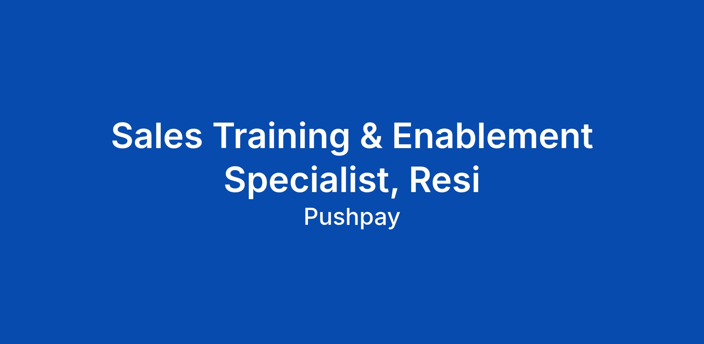 Sales Training & Enablement Specialist, Resi