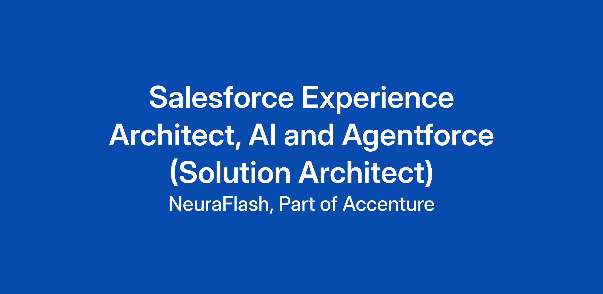 Be part of the NeuraFlash, Part of Accenture journey and help shape the next wave of AI-powered transformation. Here, you’ll collaborate with trailblazing experts who are passionate about pushing boundaries and leveraging technologies like Agentforce to create impactful customer outcomes. Whether you're developing advanced AI-powered bots, streamlining business operations, or building solutions using the latest generative AI technologies, your work will drive innovation at scale. If you’re ready to make your mark in the AI space, NeuraFlash, Part of Accenture is the place for you.