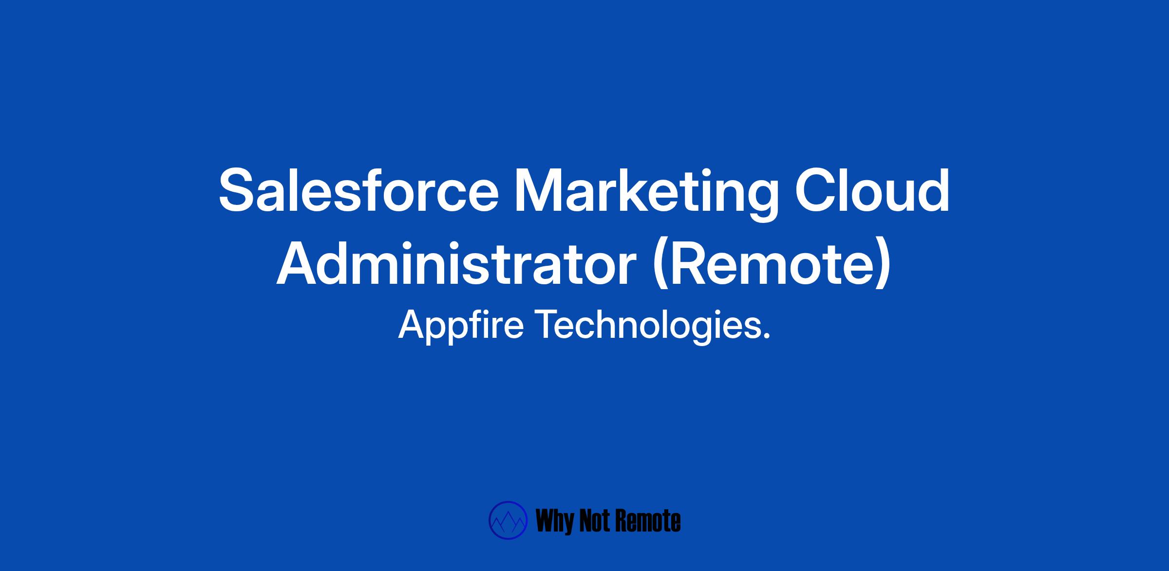 Appfire is looking for a Salesforce Marketing Cloud (SFMC) Administrator to join the Appfire Marketing Operations Team. If you are experienced with SFMC and have a passion for building compelling, multi-channel journeys to nurture and engage users throughout their lifecycle, we want to hear from you.