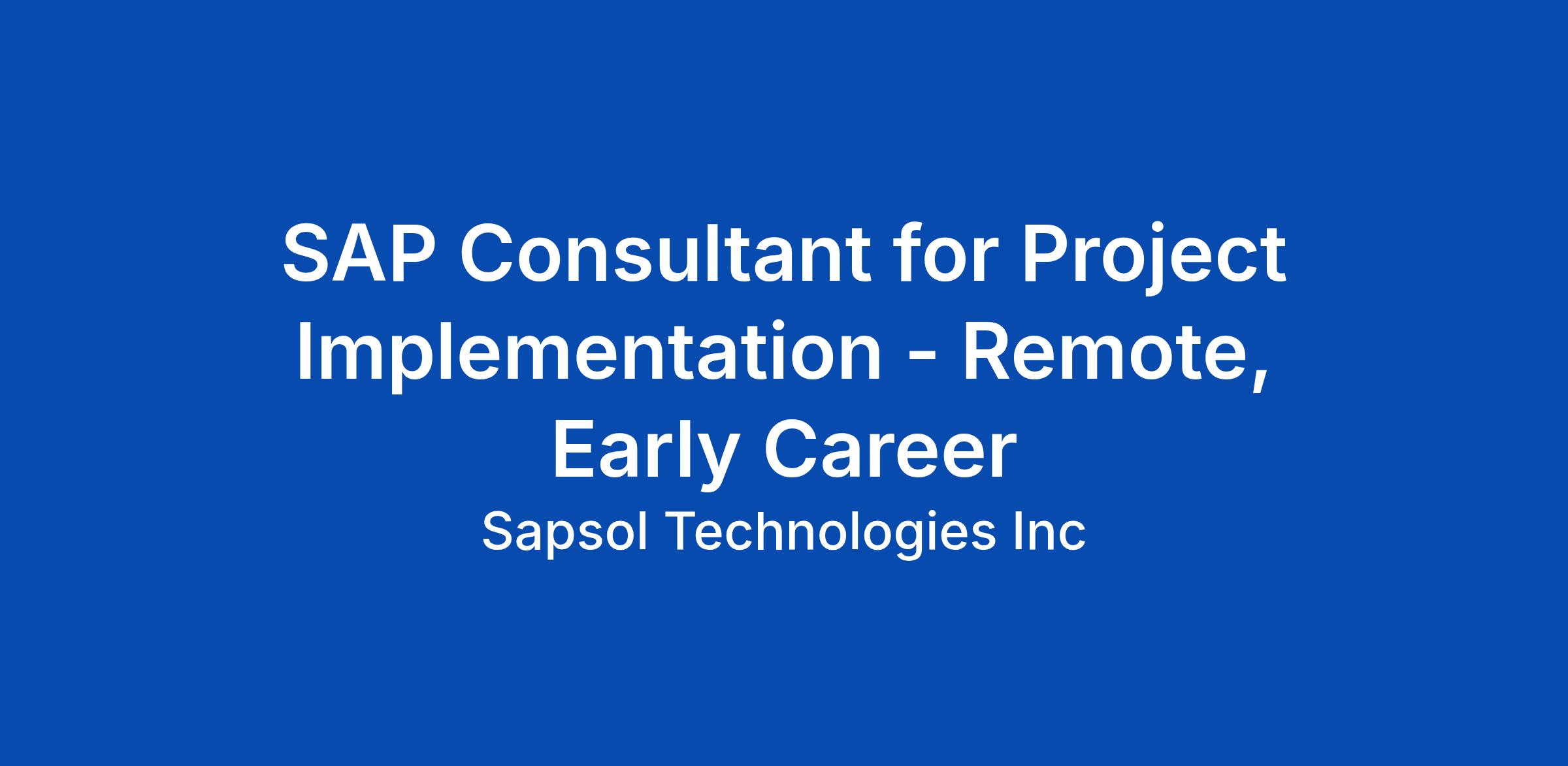SAPSOL technologies Inc is looking for SAP consultants in the FICO, SD, MM, HCM, Success Factors, BIBO, PS, PP, ABAP, Hana Cloud, and BASIS to implement the project for SPIL (SAPSOL Product Innovation Lab) . We are specialized SAP, Cloud, and Big Data consulting company. The project is ideal for candidates who want to work in real time world and new technology areas to get gainful employment after completion of the project.