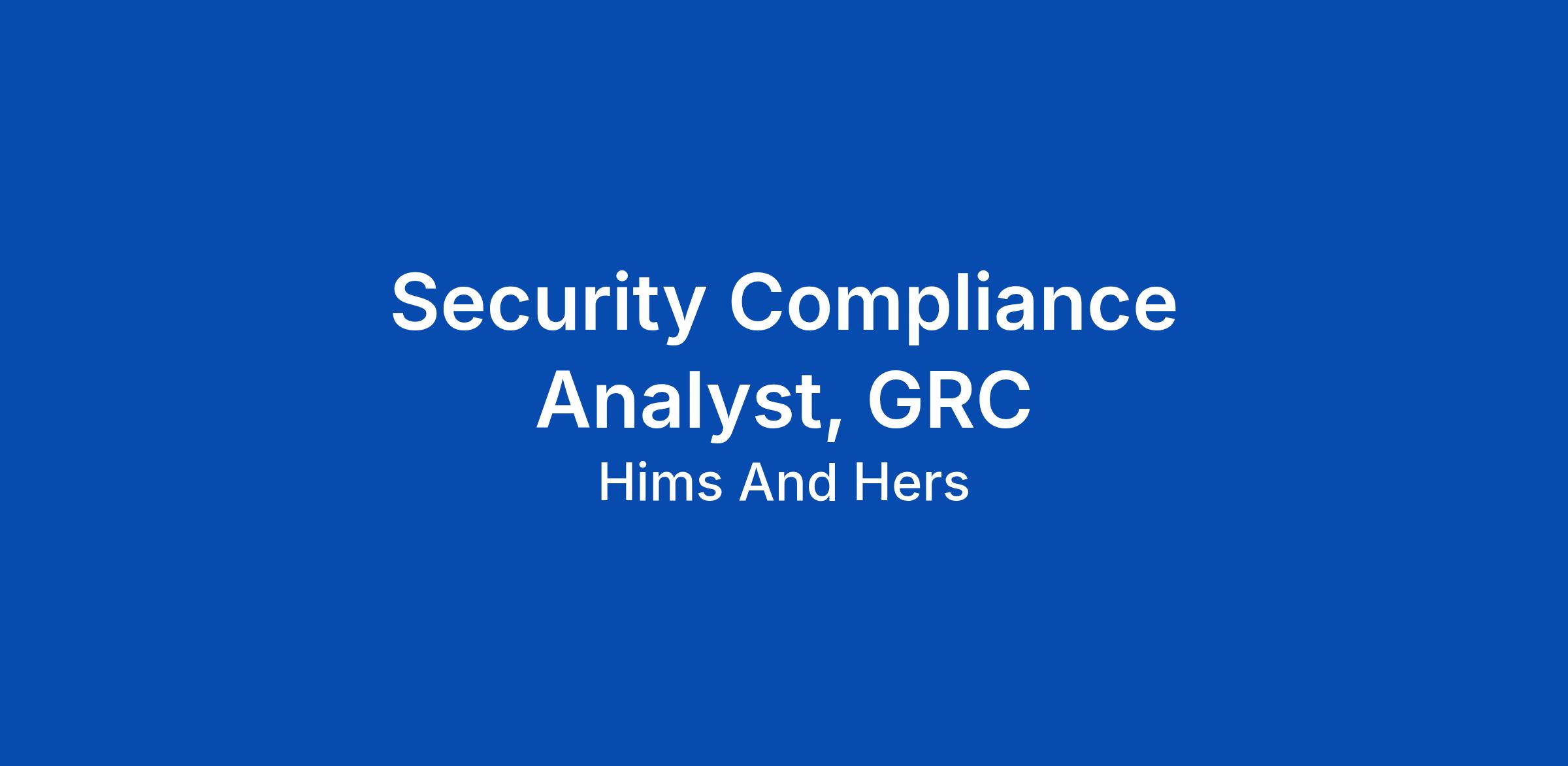 Security Compliance Analyst, GRC