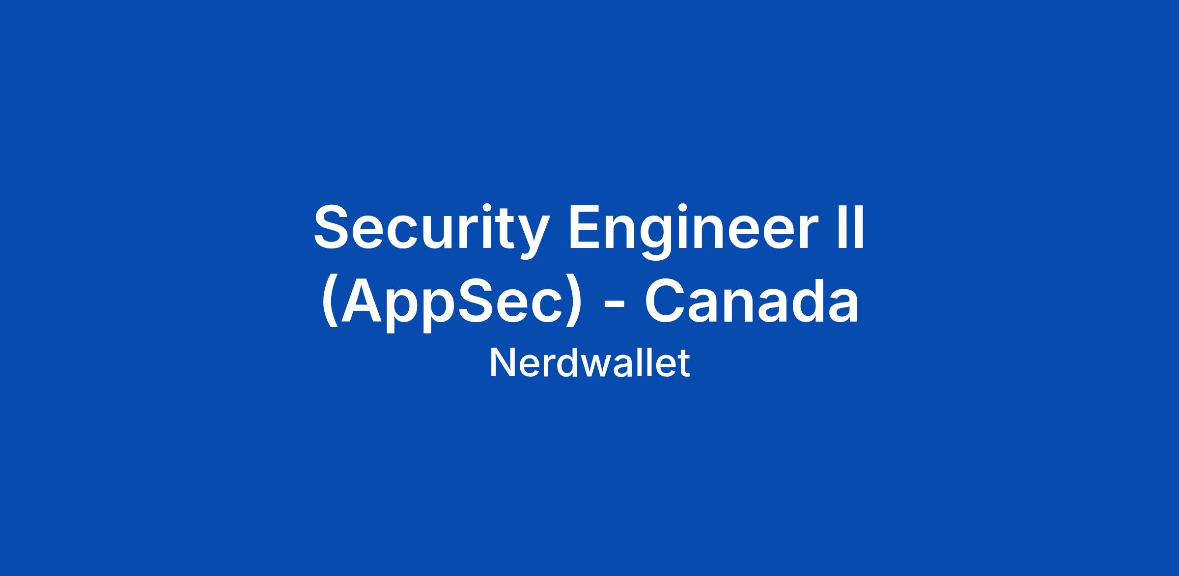Security Engineer II (AppSec) - Canada