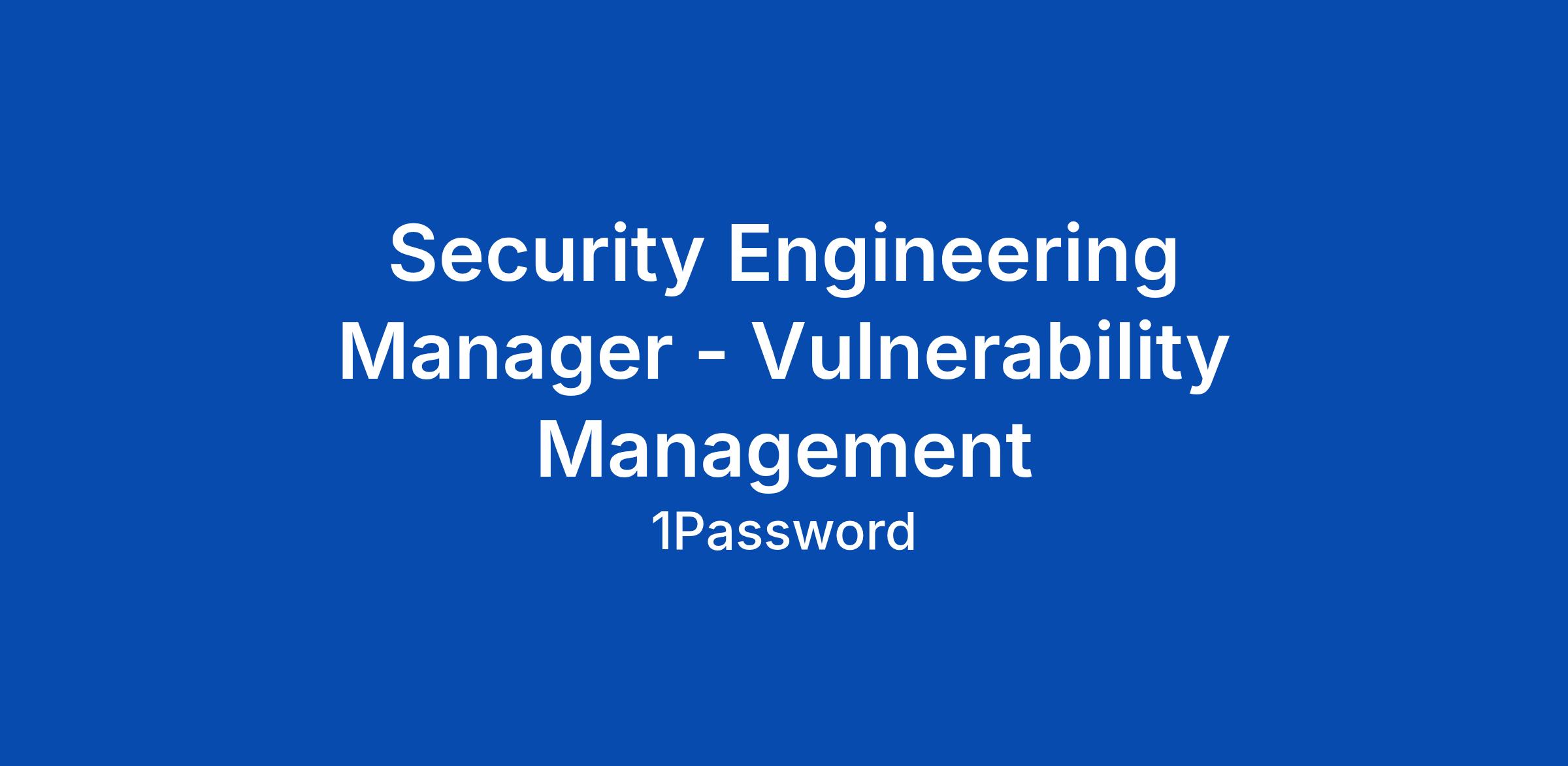 We’re building out our Vulnerability Management team, and we’re looking for an Engineering Manager to help shape it. This team helps ensure that security risks across 1Password’s software, infrastructure, and dependencies are identified, prioritized, mitigated, and resolved quickly, while ensuring a great user experience.