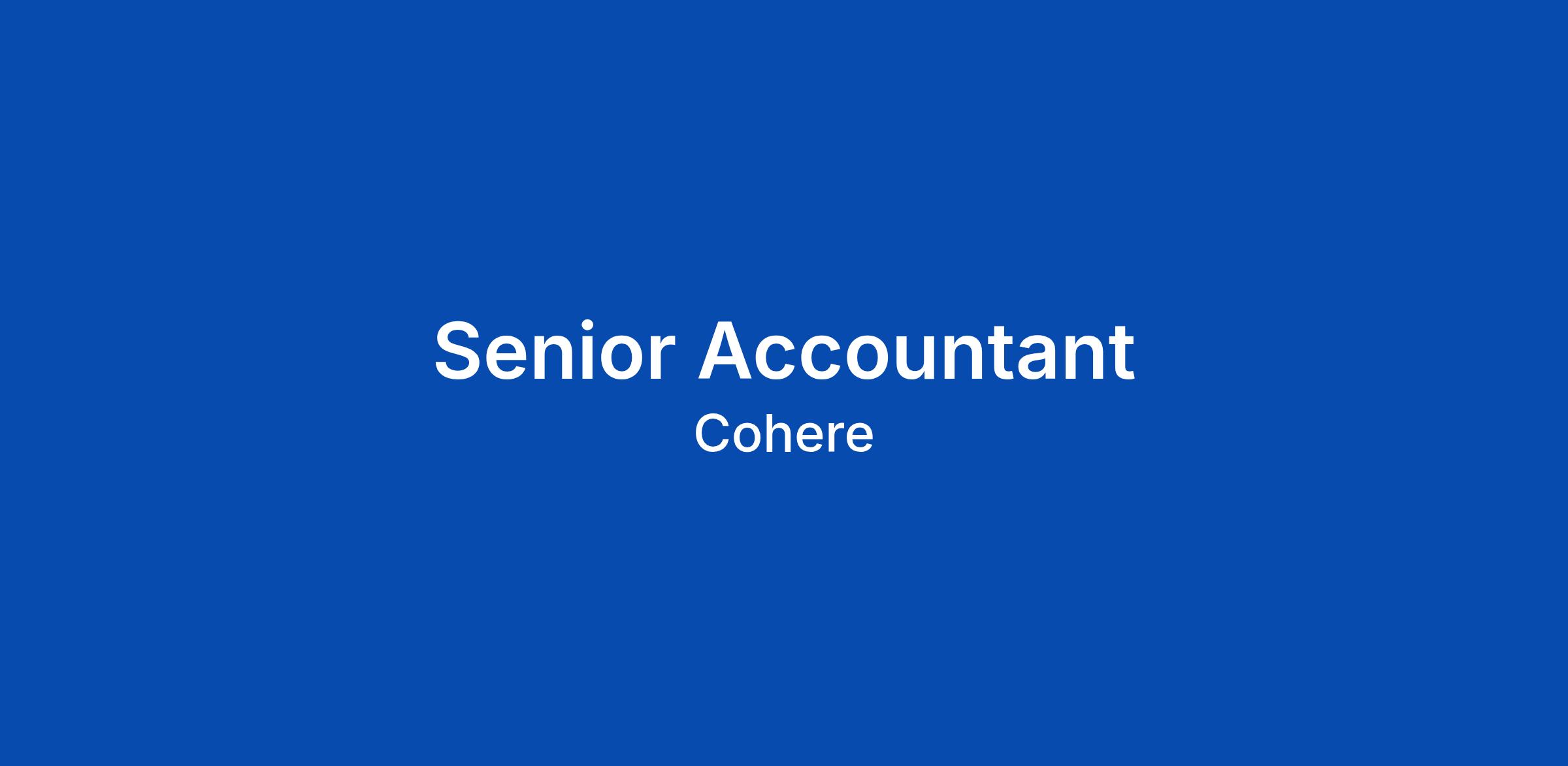 Who are we? Our mission is to scale intelligence to serve humanity. We’re training and deploying frontier models for developers and enterprises who are building AI systems to power magical experiences like content generation, semantic search, RAG, and agents. We believe that our work is instrumental to the widespread adoption of AI. We obsess over what we build. Each one of us is responsible for contributing to increasing the capabilities of our models and the value they drive for our customers. We like to work hard and move fast to do what’s best for our customers. Cohere is a team of researchers, engineers, designers, and more, who are passionate about their craft. Each person is one of the best in the world at what they do. We believe that a diverse range of perspectives is a requirement for building great products. Join us on our mission and shape the future! SENIOR ACCOUNTANT Multiple Locations (San Francisco, New York, Toronto, Remote) • Full time • Hybrid/Remote Cohere is at the forefront of AI innovation, building cutting-edge language models and AI systems. Our Finance team plays a critical role in supporting our rapid growth and ensuring operational excellence. We value t