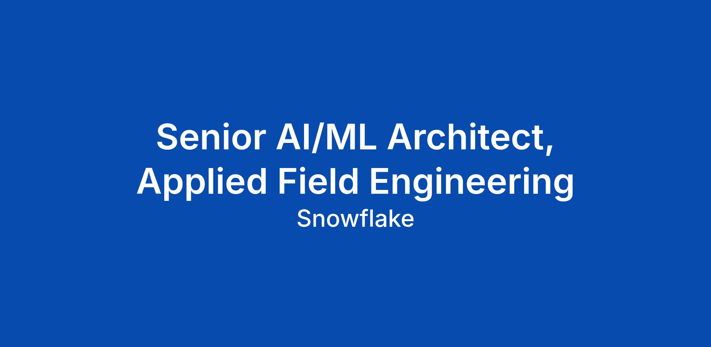 Senior AI/ML Architect, Applied Field Engineering