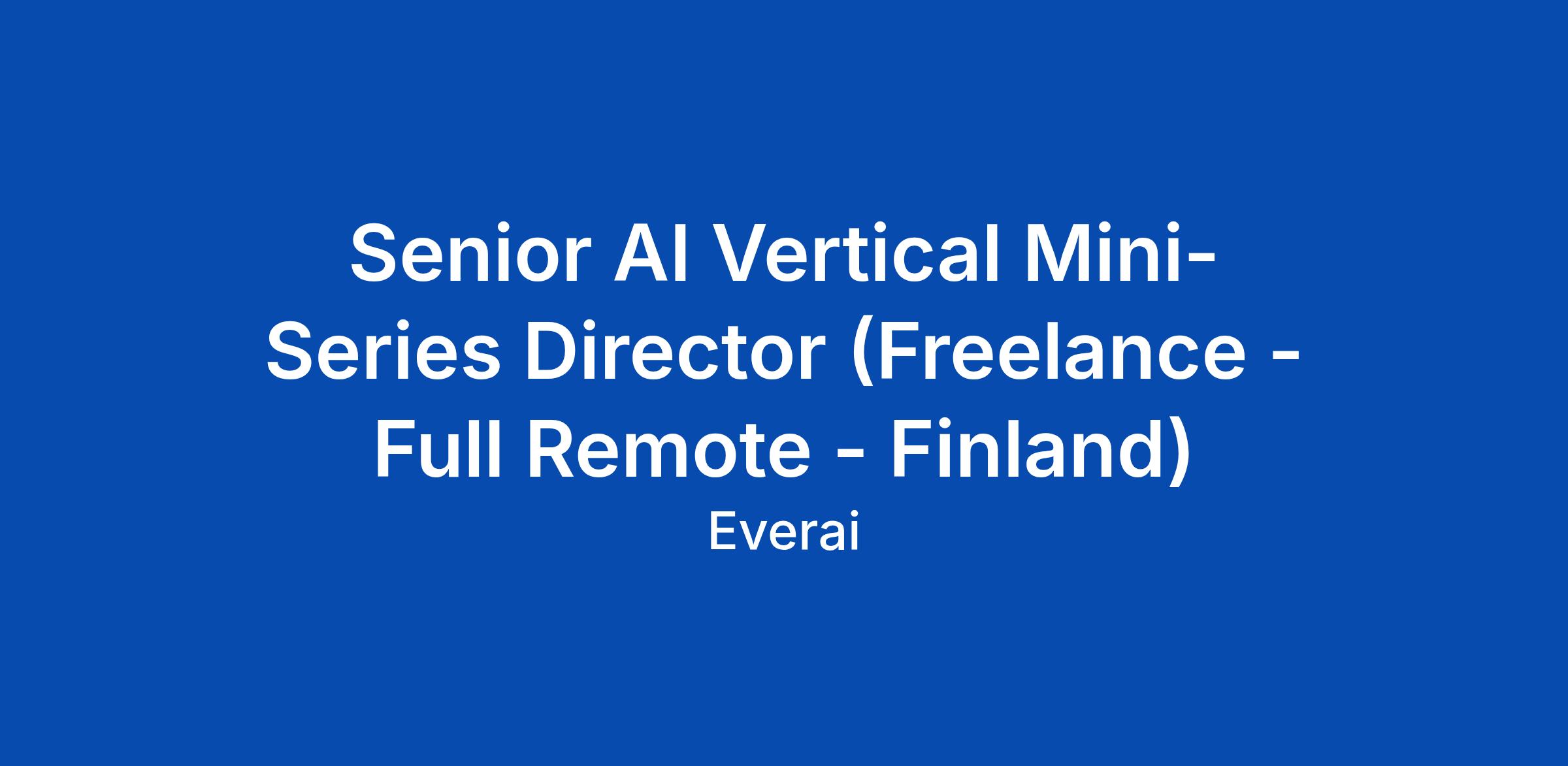 Senior AI Vertical Mini-Series Director (Freelance - Full Remote - Finland)