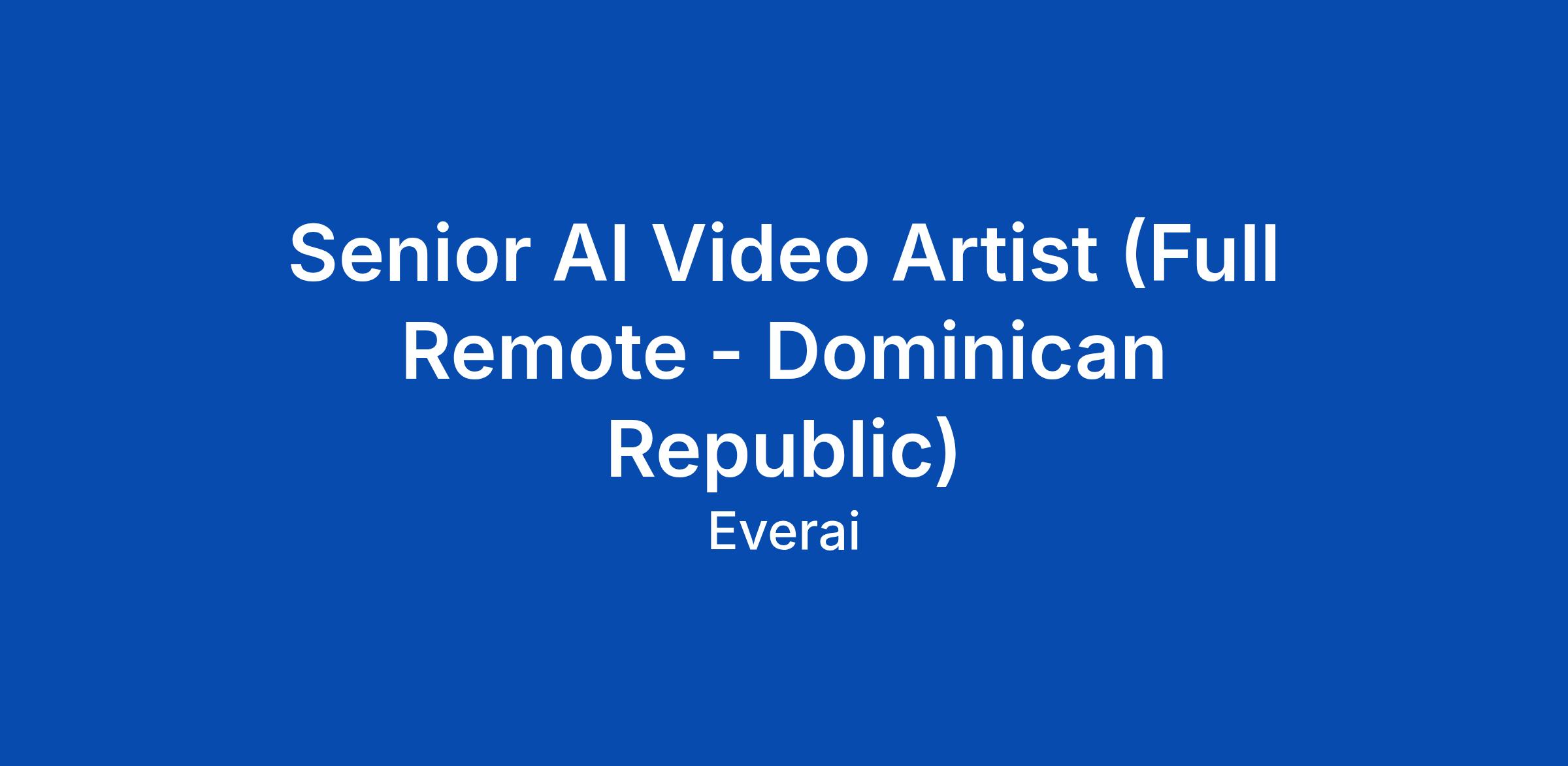 Senior AI Video Artist (Full Remote - Dominican Republic)