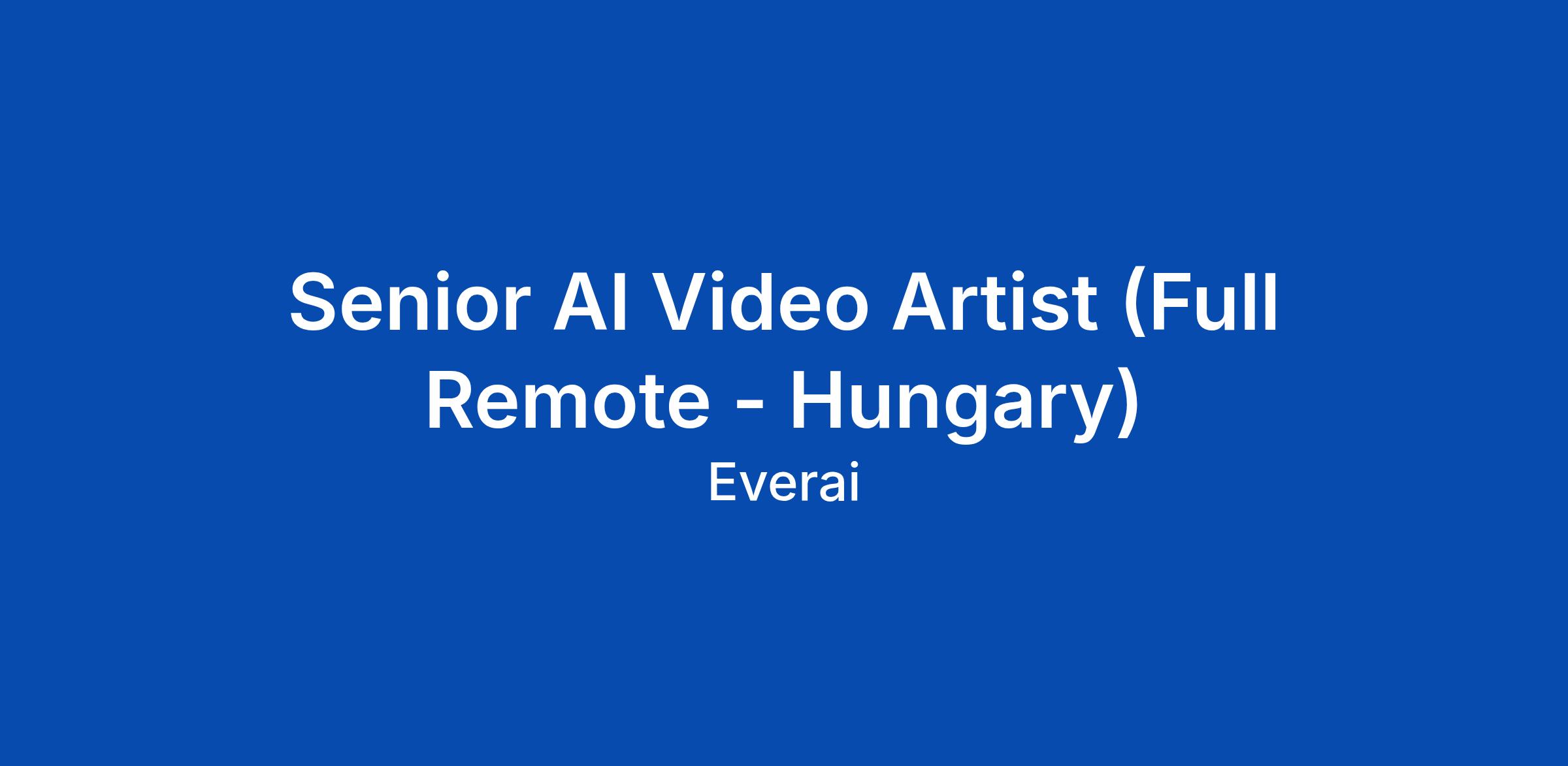 Senior AI Video Artist (Full Remote - Hungary)