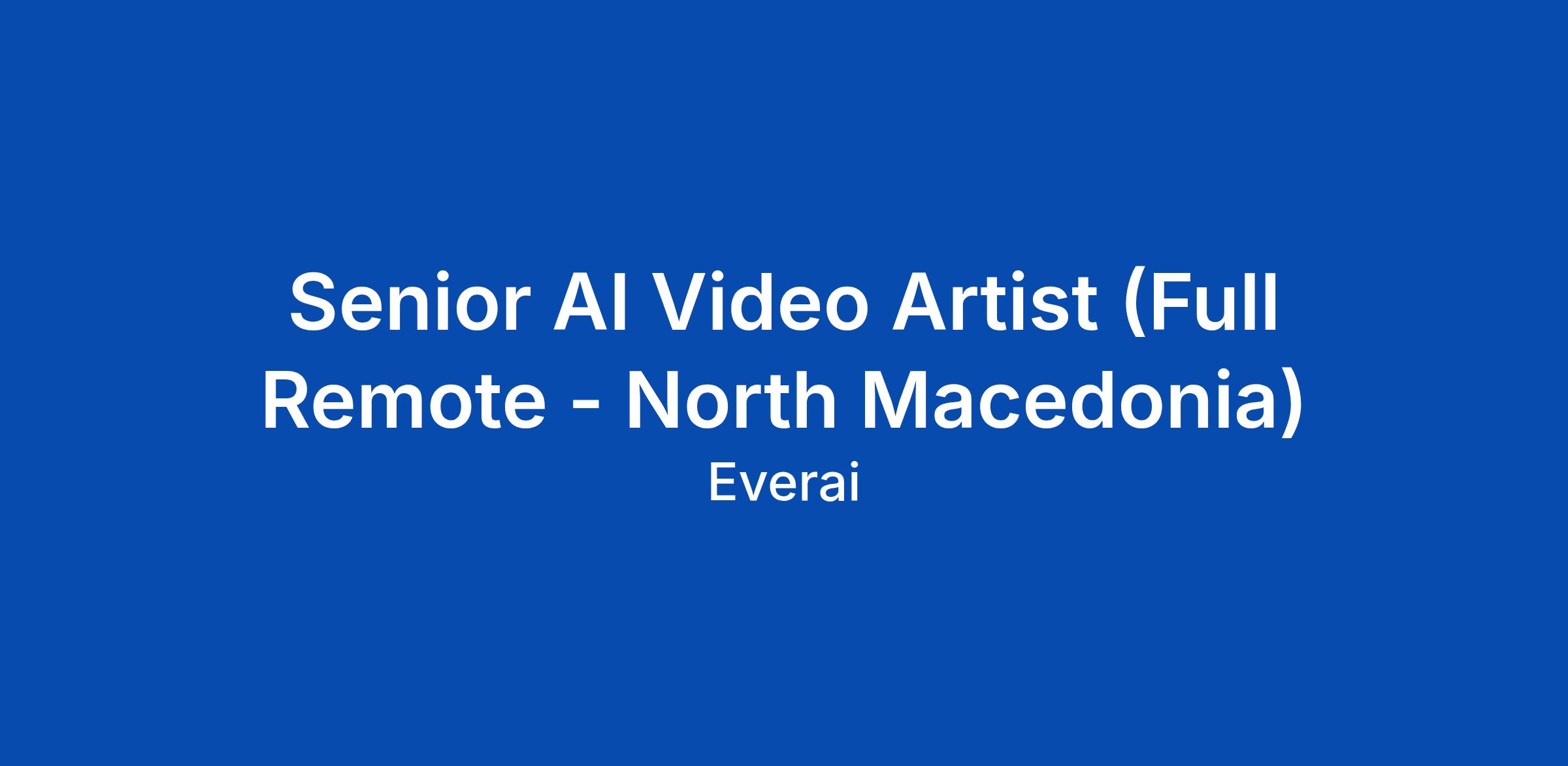Senior AI Video Artist (Full Remote - North Macedonia)
