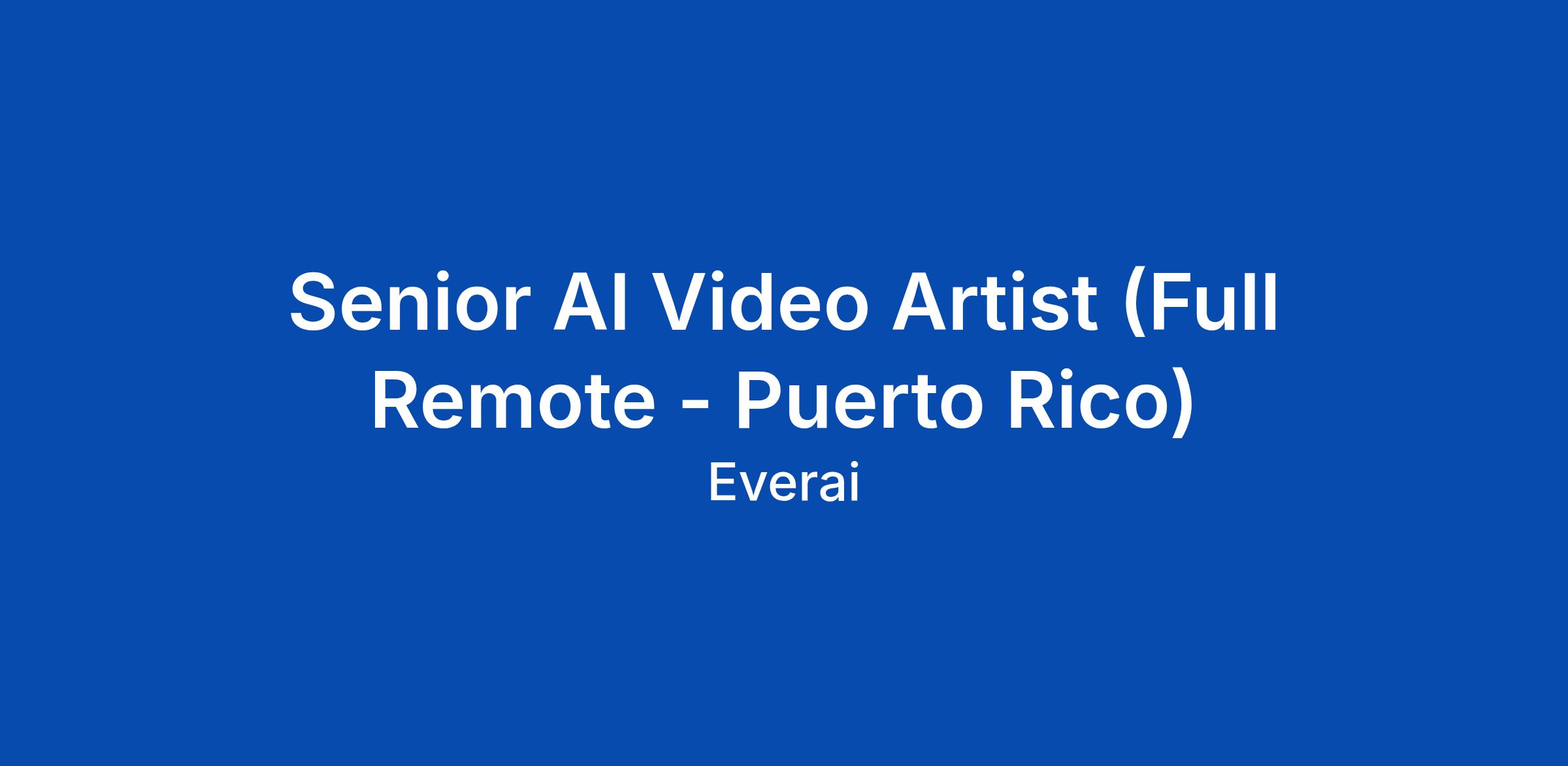 Senior AI Video Artist (Full Remote - Puerto Rico)