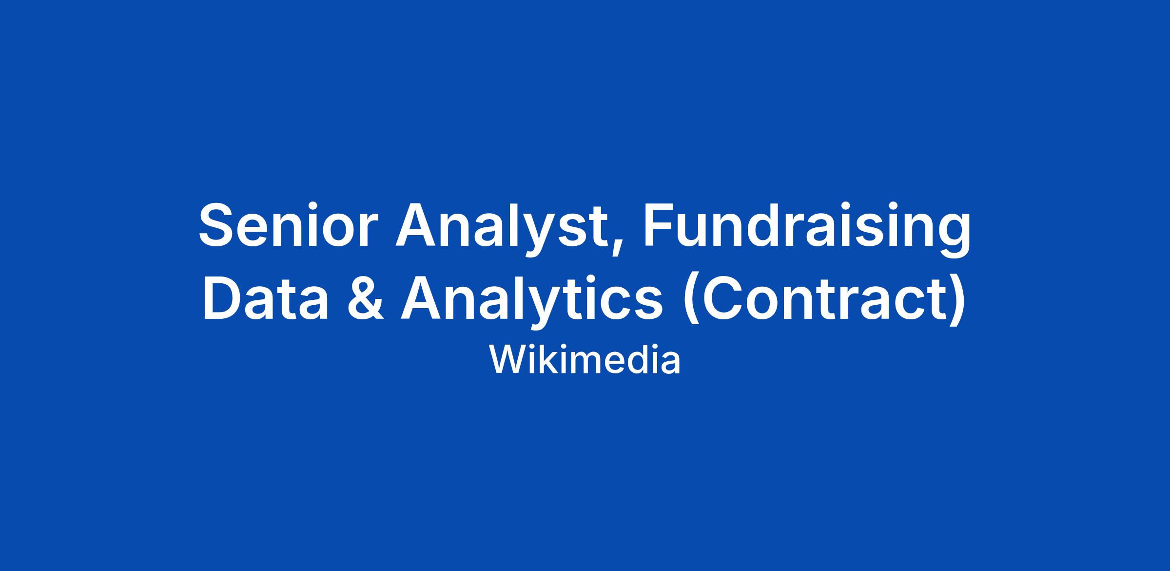 Senior Analyst, Fundraising Data & Analytics (Contract)