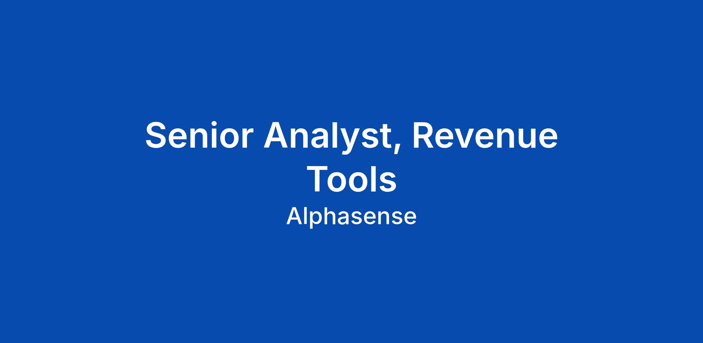Senior Analyst, Revenue Tools