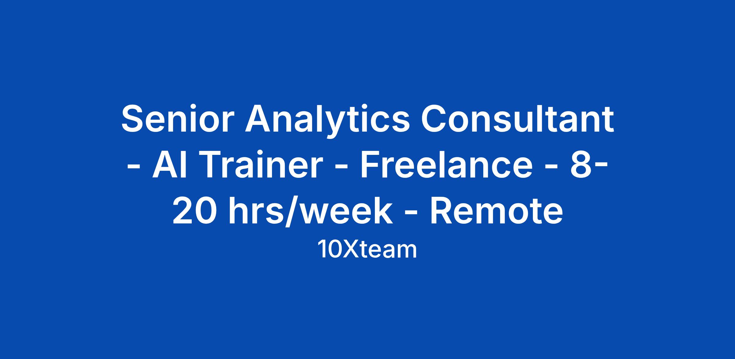 Updated: 16 April 2026 Freelance | 8β20 hrs/week | Remote (EU/UK) Are you an experienced analytics consultant who instinctively spots gaps in data-driven decision making and understands the complex realities of analytics in organisational settings? Do you have 8 to 20 hours per week available alongside your main job or consulting projects? Join us in shaping how AI understands and applies analytics expertise at scale. About the Role 10x.team connects expert freelancers with leading AI labs building next-generation models. We are looking for knowledgeable analytics consultants based in the EU or UK to enhance the accuracy, depth, and real-world relevance of AI-powered analytics and business intelligence systems. What You Will Do - Review and refine AI-generated outputs related to data analytics, reporting, business intelligence, and practical analytics workflows - Evaluate AI responses for analytical rigour, practical value, and real-world applicability - Draft realistic analytics scenarios based on your direct professional experience - Create scenario variations from different perspectives (e.g. analytics consultant, client, business stakeholder, or data scientist) - Identify gaps,