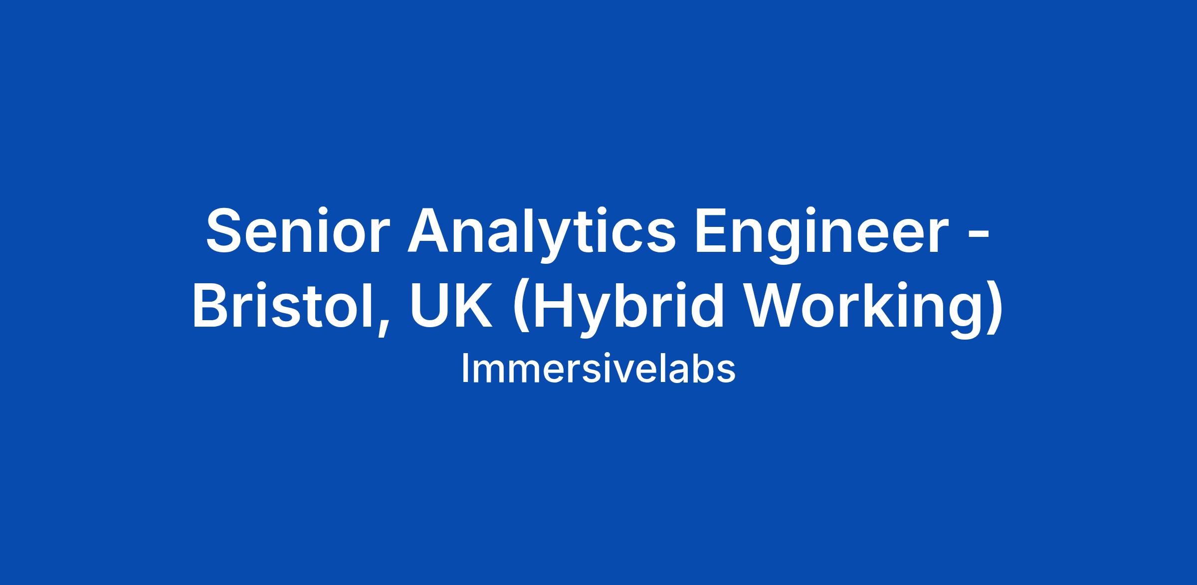 Senior Analytics Engineer - Bristol, UK (Hybrid Working)