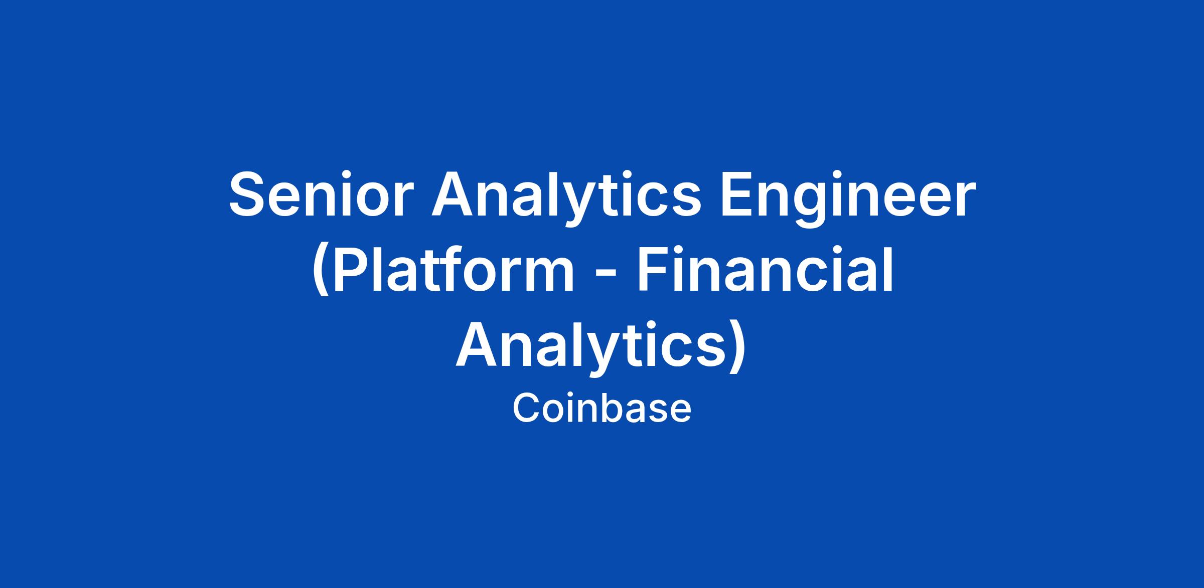 Senior Analytics Engineer (Platform - Financial Analytics)