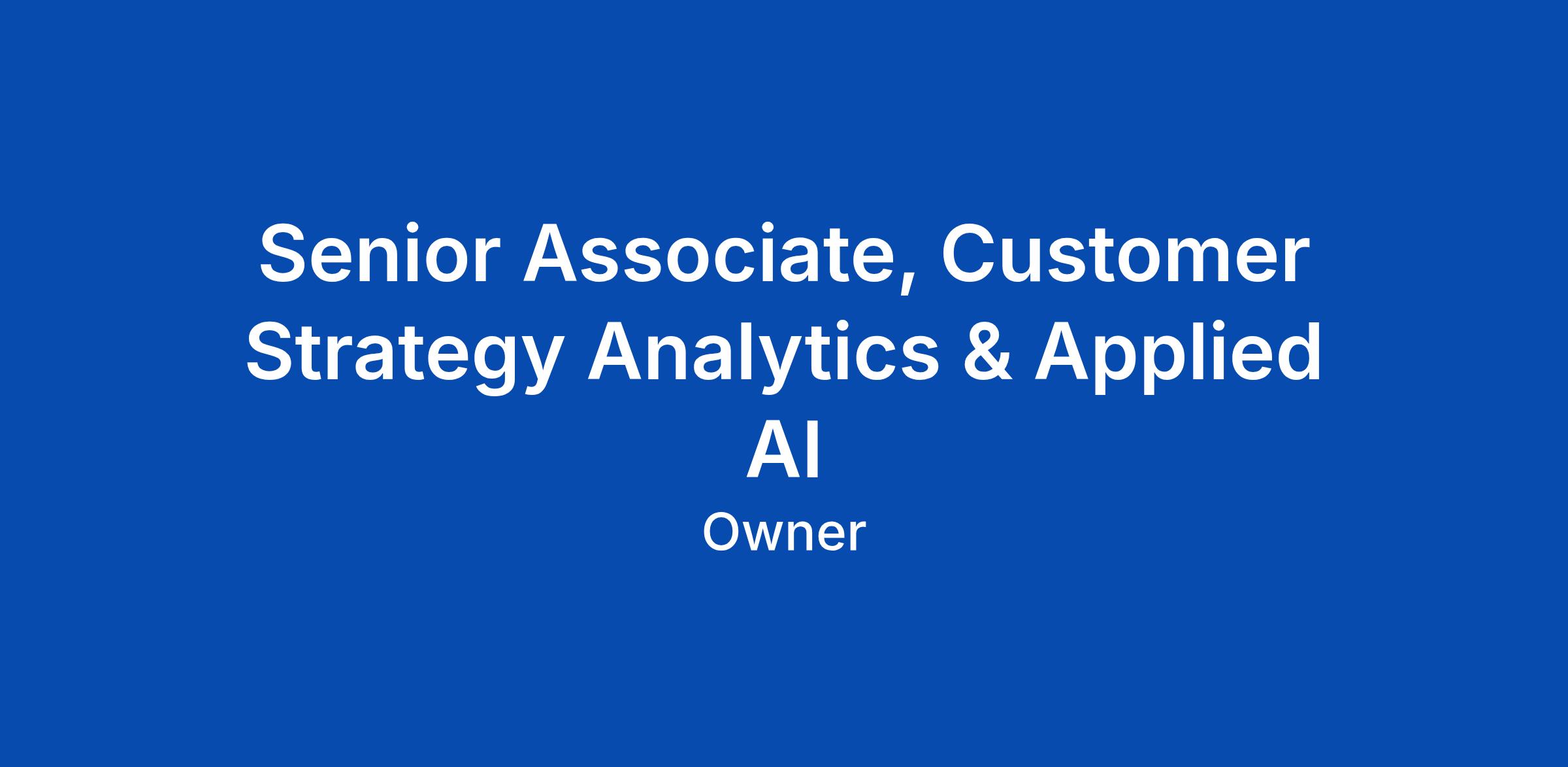 Senior Associate, Customer Strategy Analytics & Applied AI