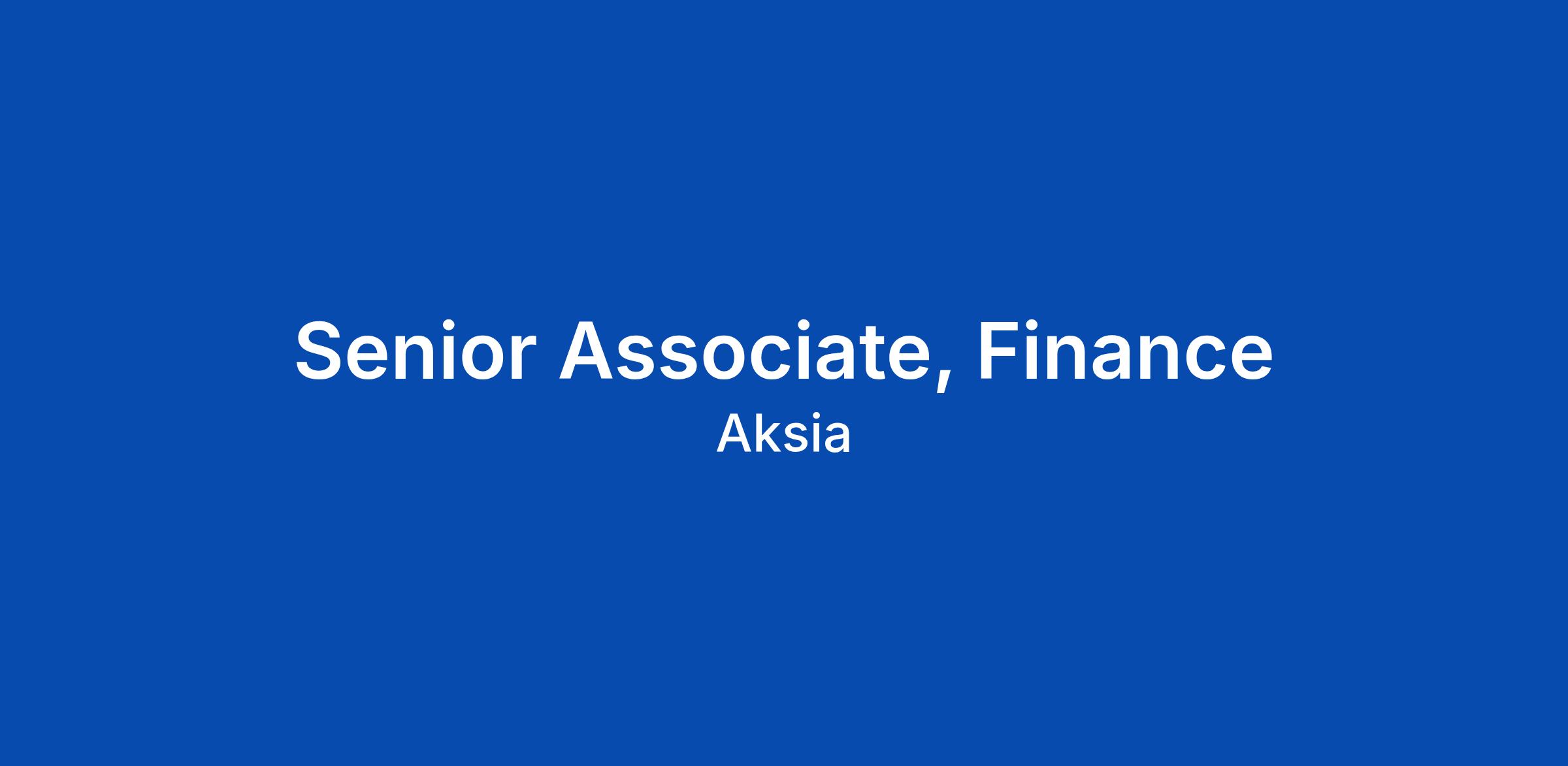 Senior Associate, Finance