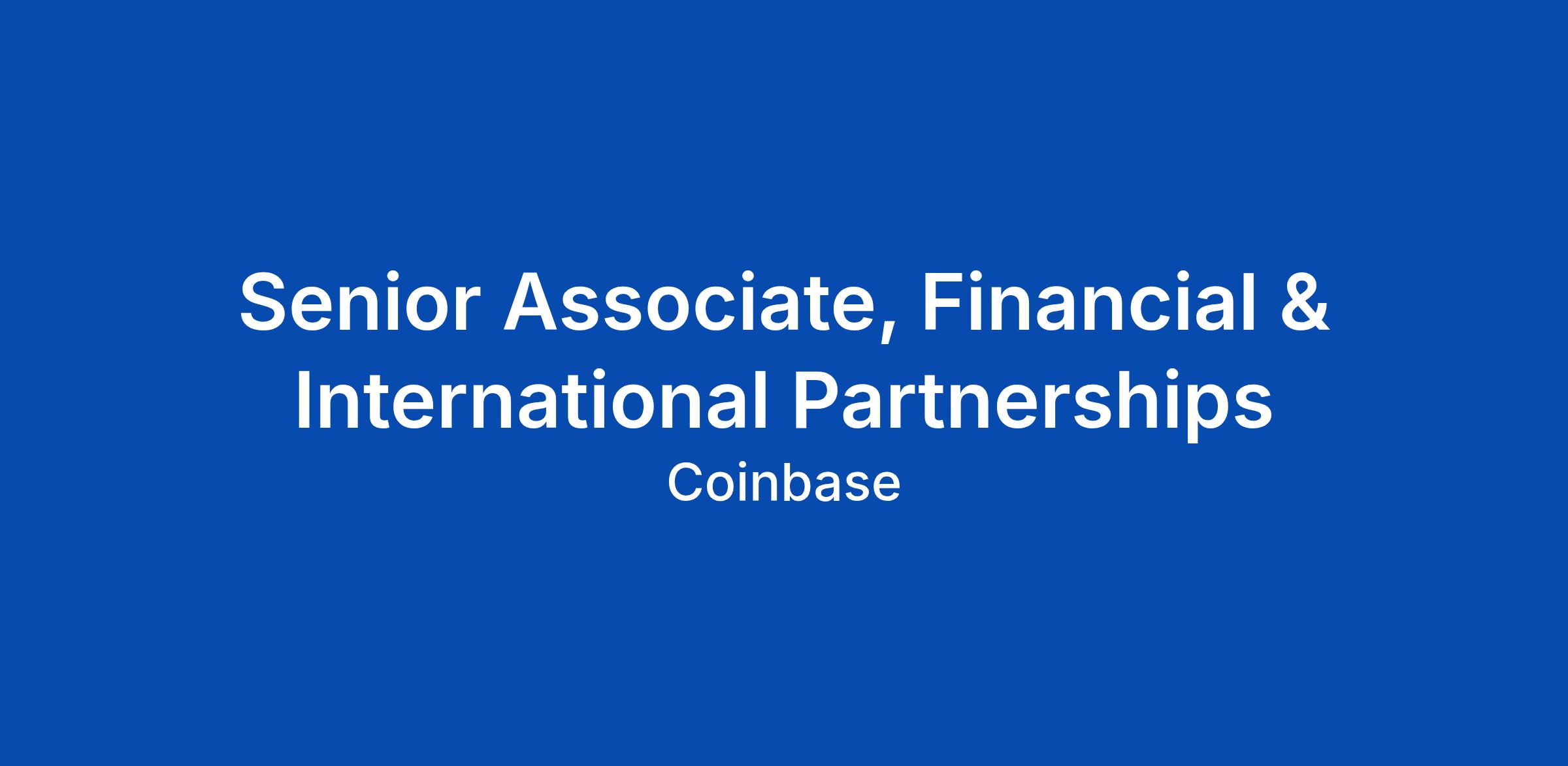 Senior Associate, Financial & International Partnerships