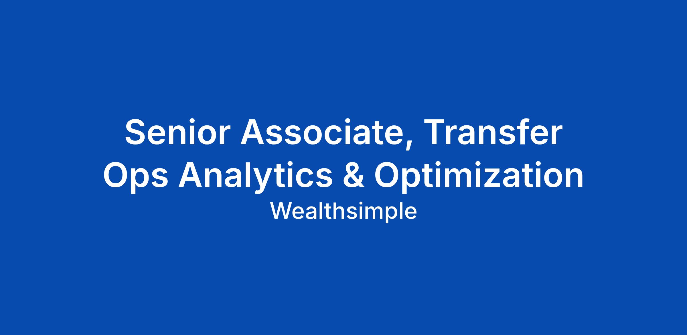 Senior Associate, Transfer Ops Analytics & Optimization