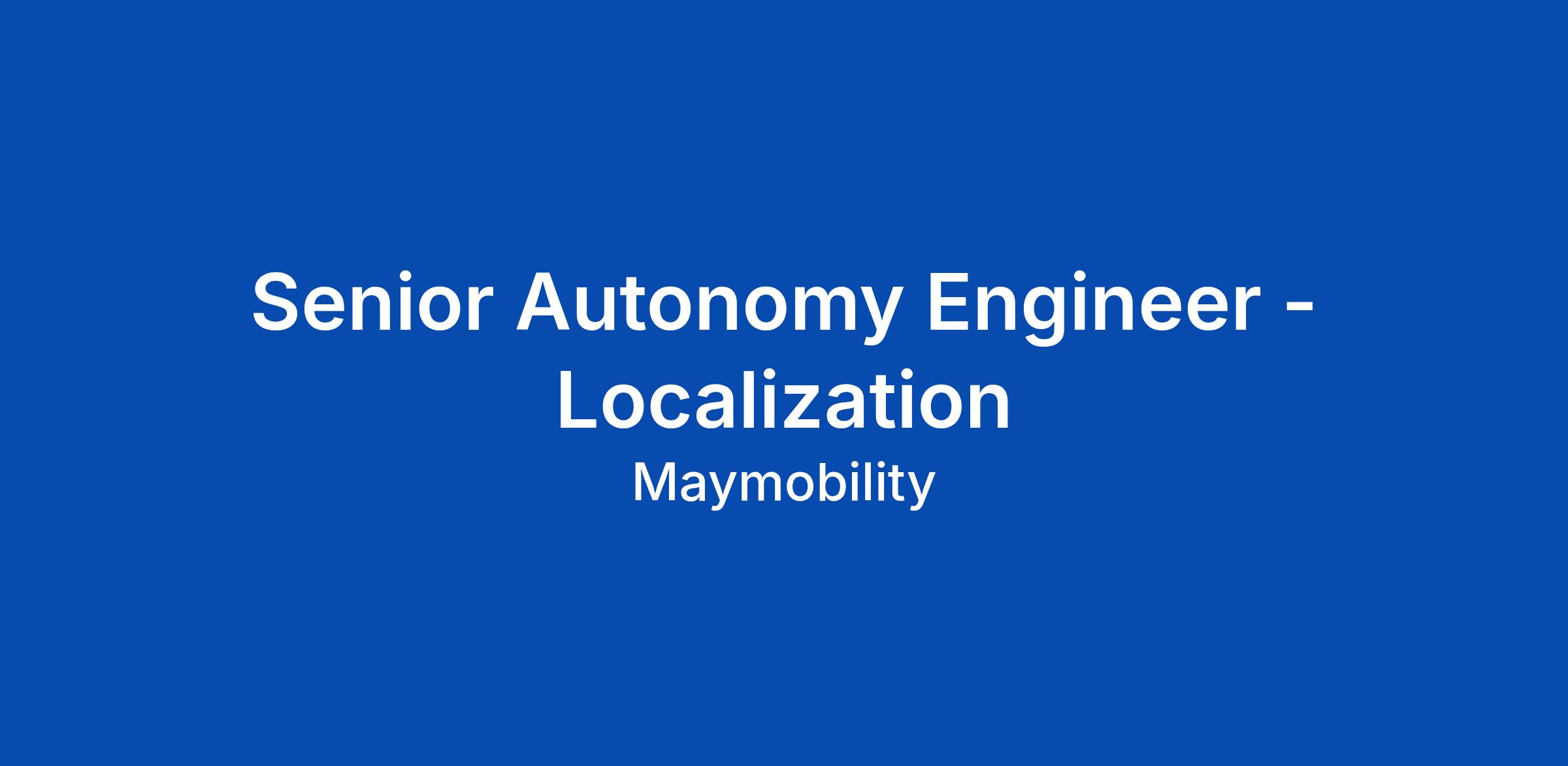 Senior Autonomy Engineer - Localization