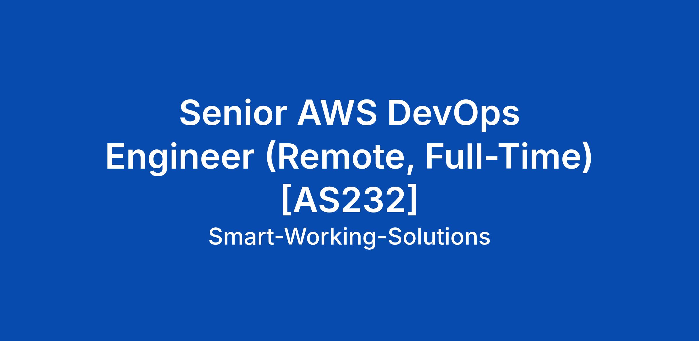 Senior AWS DevOps Engineer (Remote, Full-Time) [AS232]