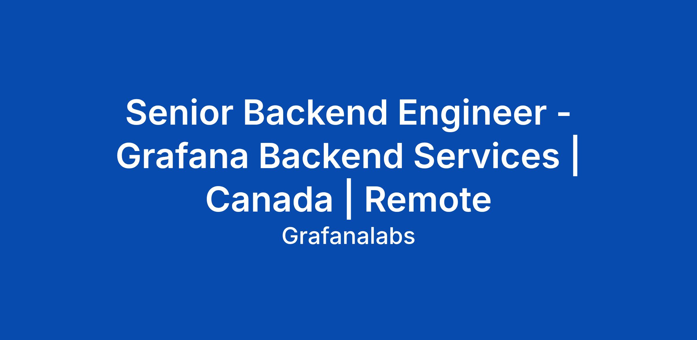 Senior Backend Engineer - Grafana Backend Services | Canada | Remote