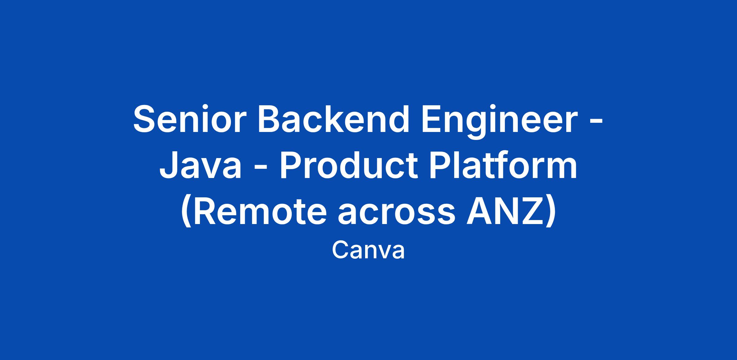 Senior Backend Engineer - Java - Product Platform (Remote across ANZ)